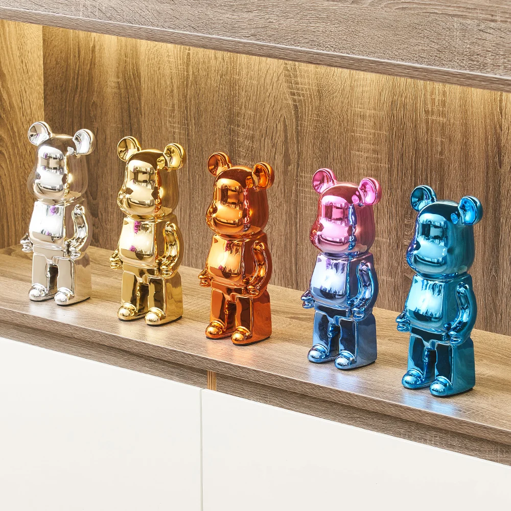 Nordic Home Decoration kreatywny galwanizacja ceramiczne niedźwiedź rzeźba figurki wewnętrzna lampka luksusowa dekoracja salonu