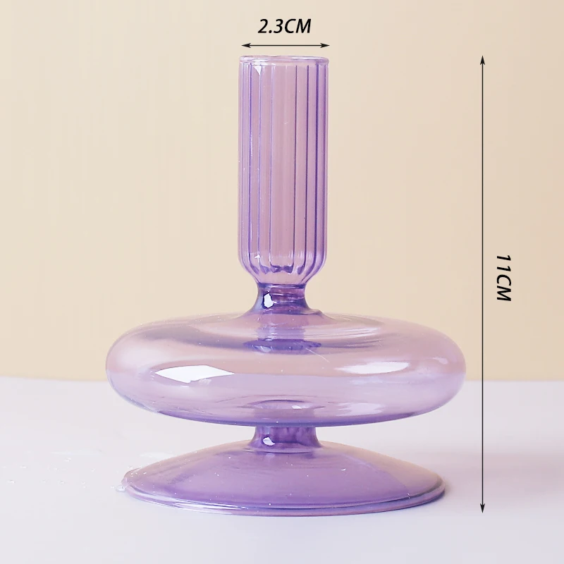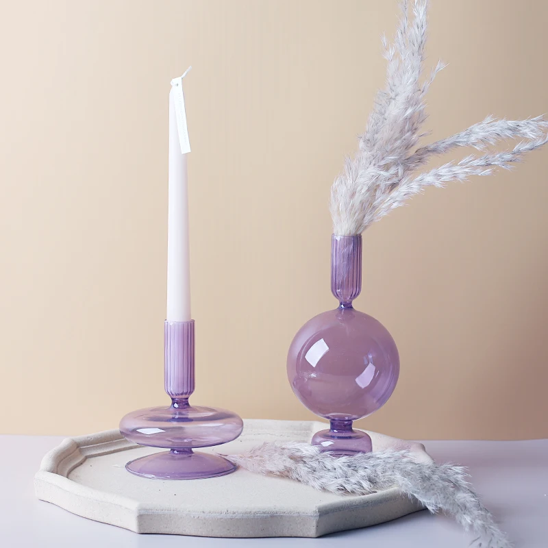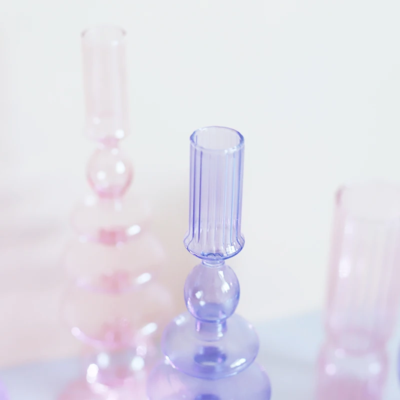 Nordic romantyczne szklane świeczniki fioletowe różowe dekoracje ślubne Bougeoir świecznik dekoracja salonu portavela