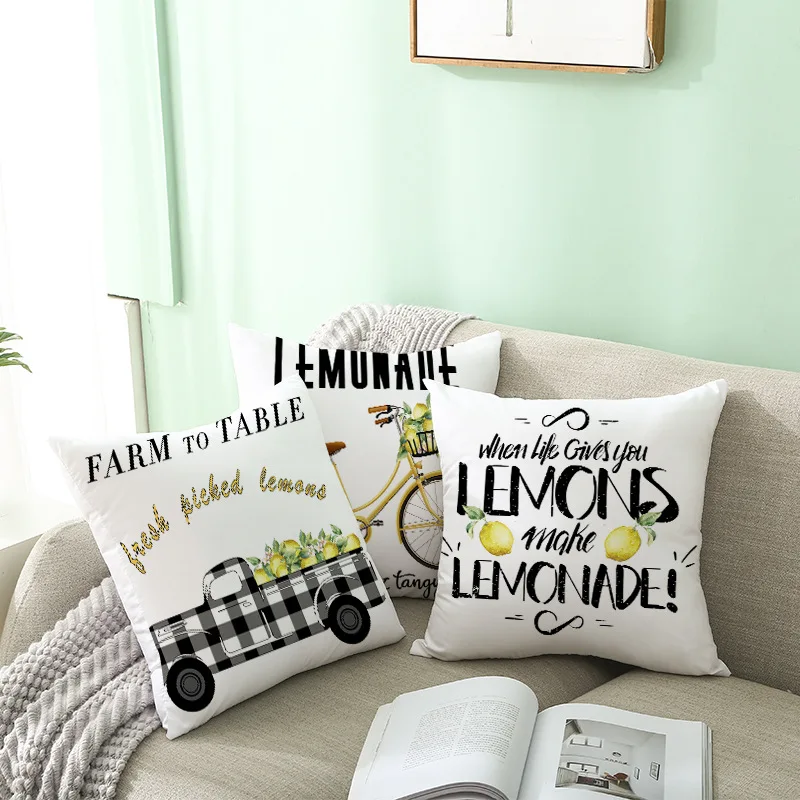 Nordic świeży żółty z nadrukiem cytryn poszewka na poduszkę gorący prosty poliester