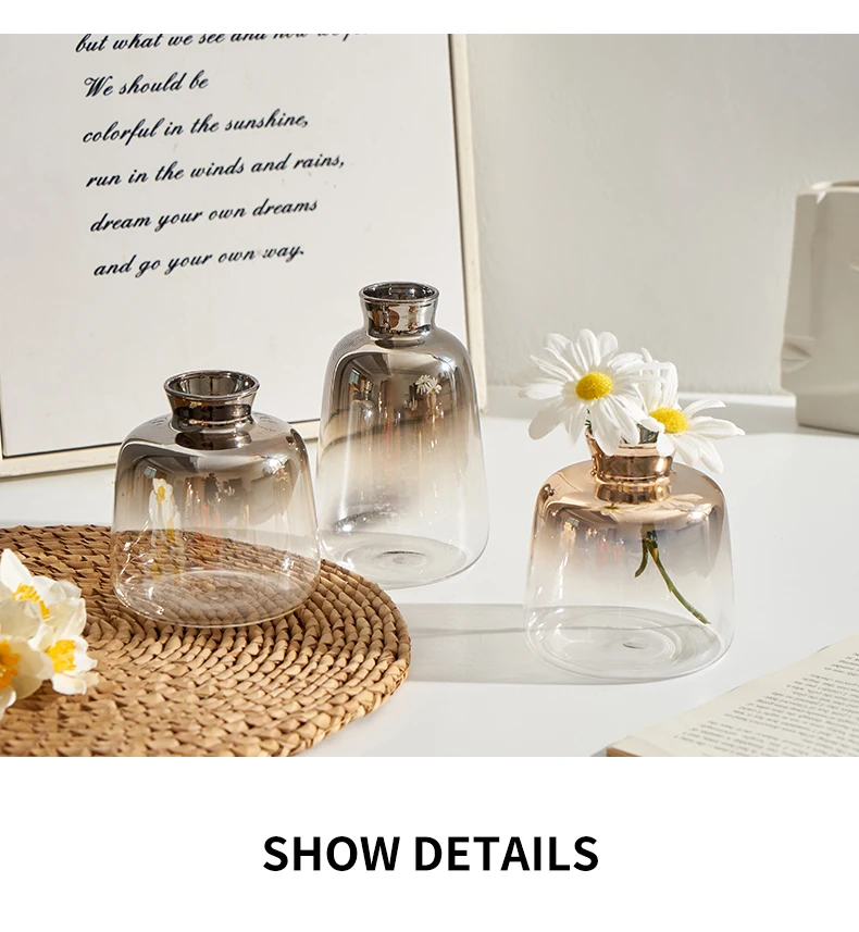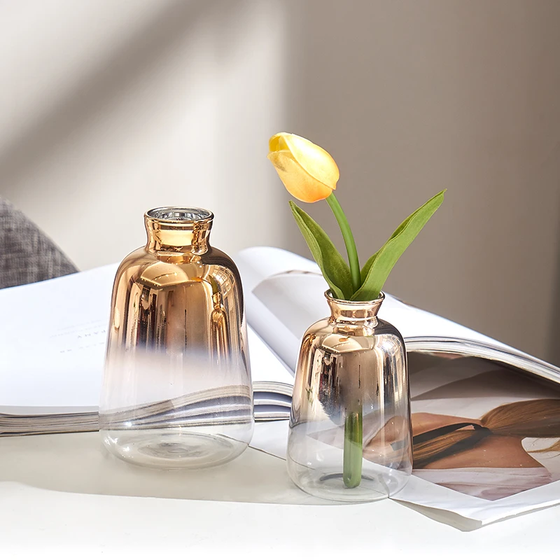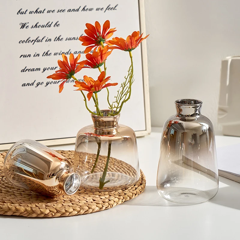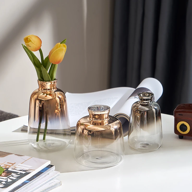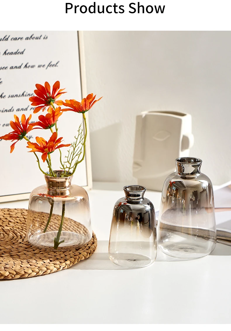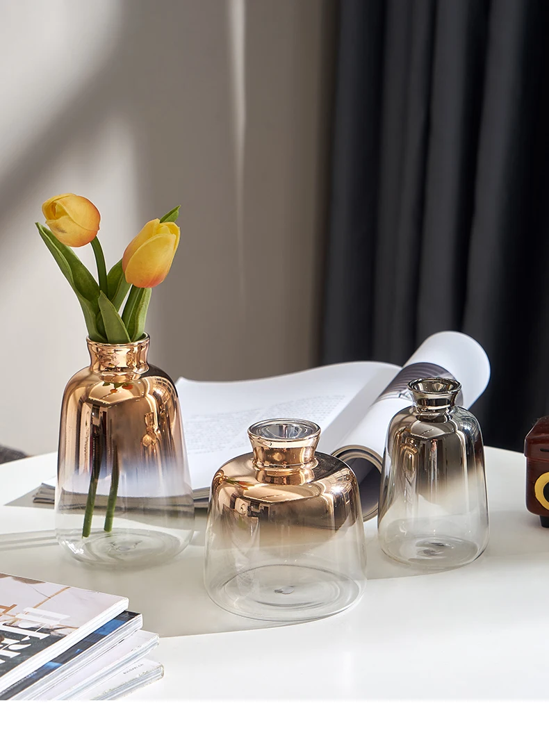 Nordic szklany wazon kreatywny wazon gradientowy złoty dekoracja suszone kwiaty wazon hydroponiczny Terrarium szklany nowoczesny dekoracyjny wazony