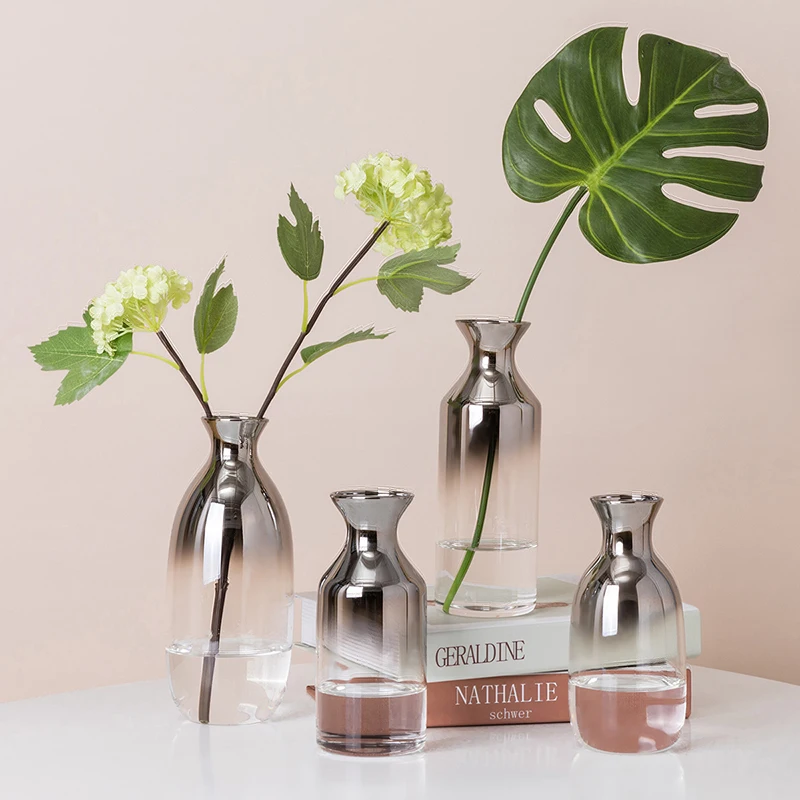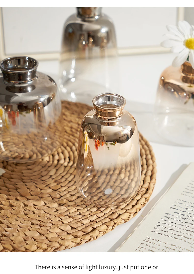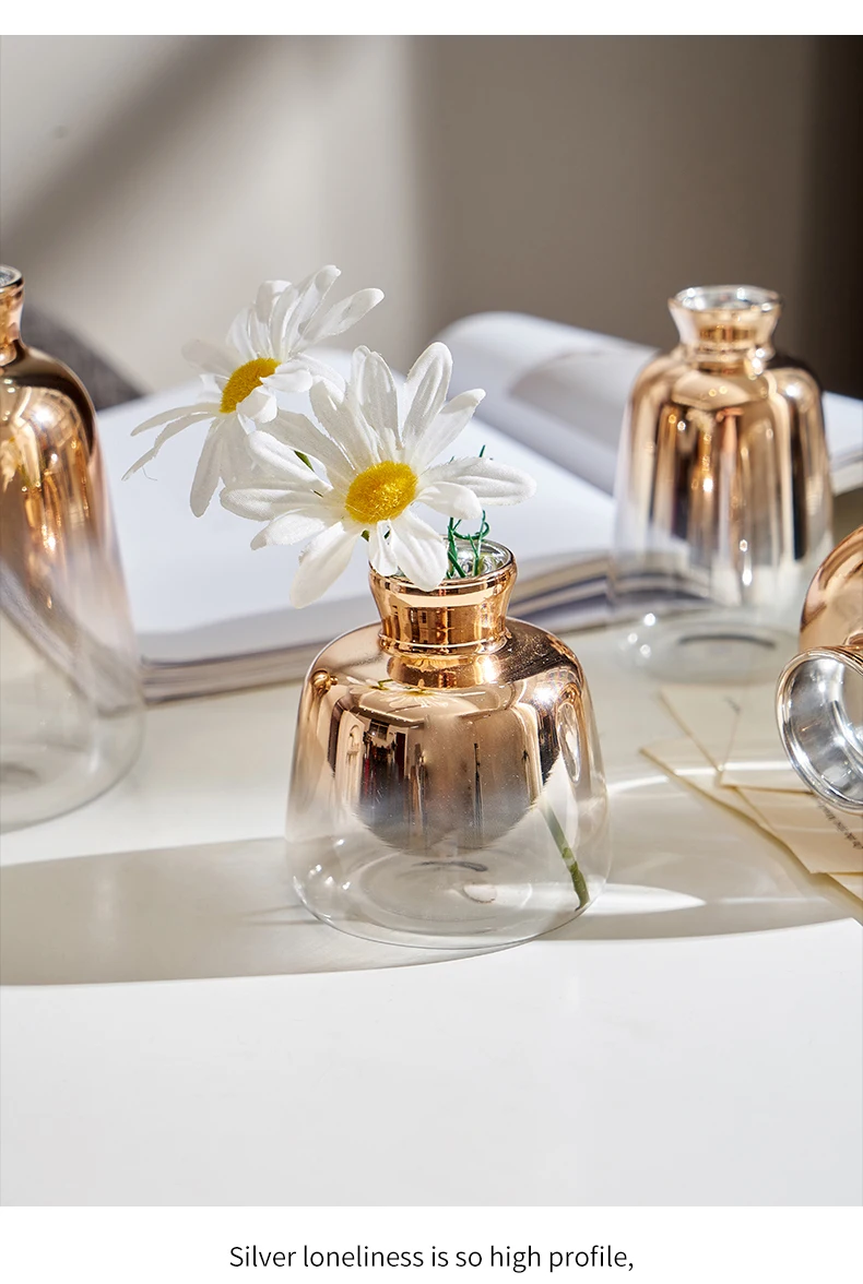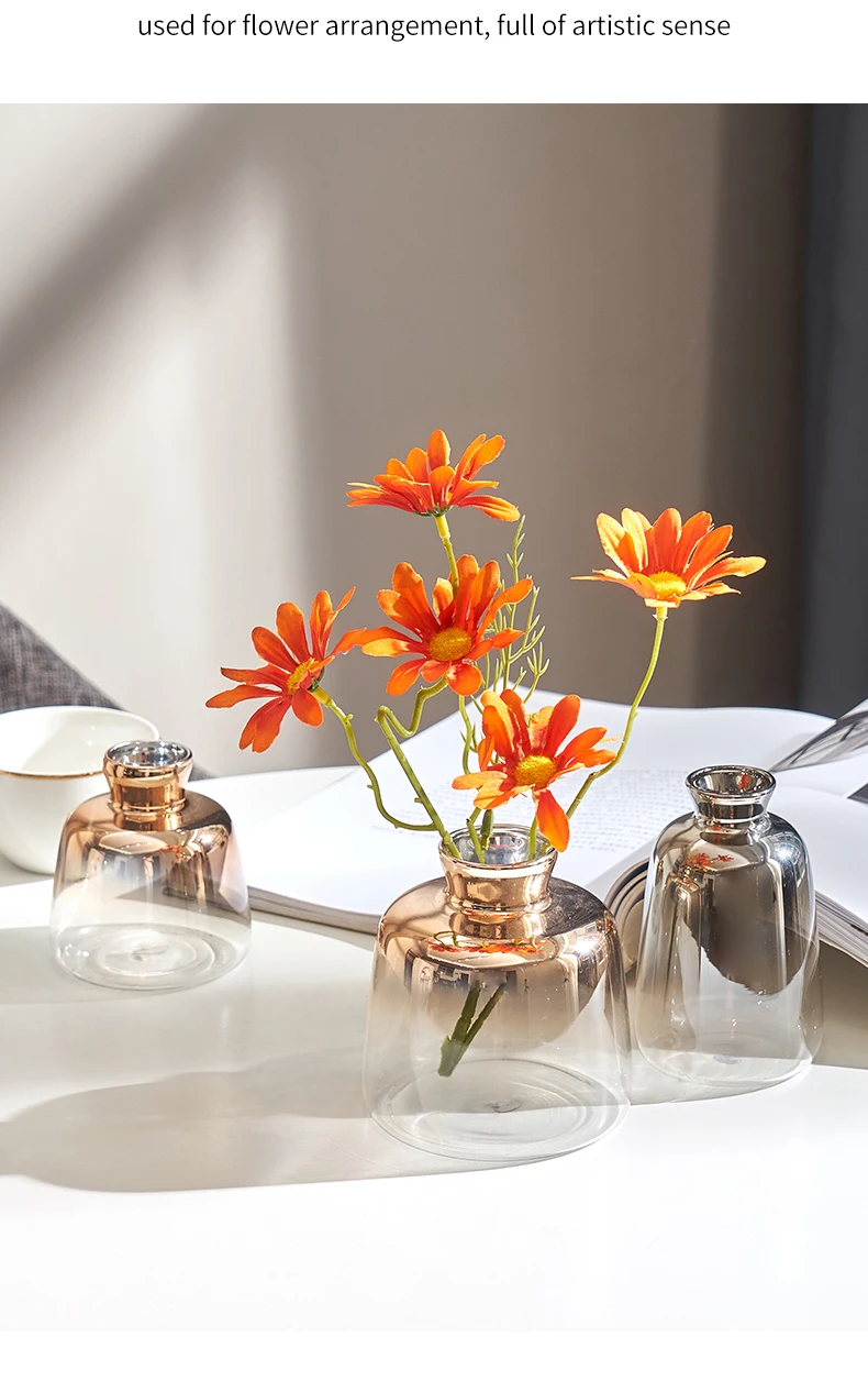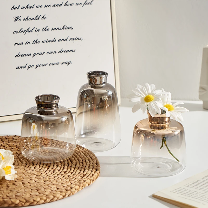 Nordic szklany wazon kreatywny wazon gradientowy złoty dekoracja suszone kwiaty wazon hydroponiczny Terrarium szklany nowoczesny dekoracyjny wazony