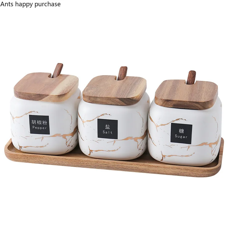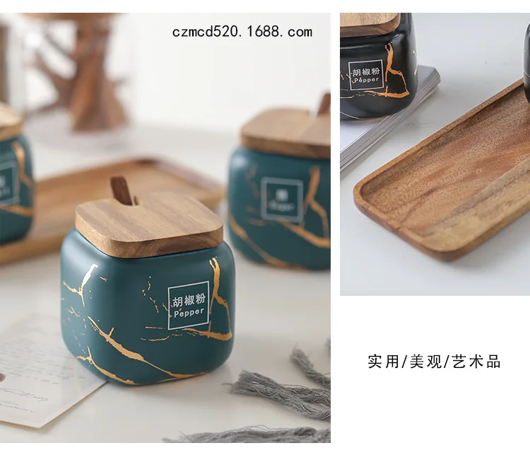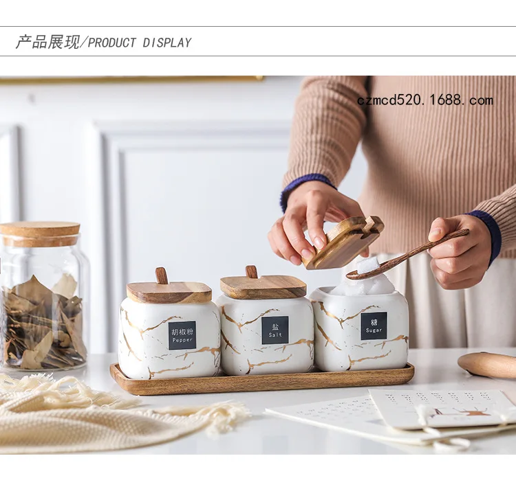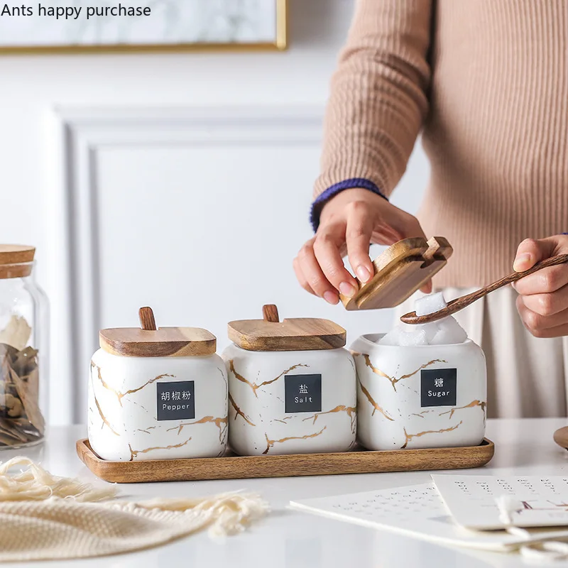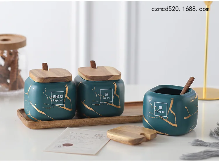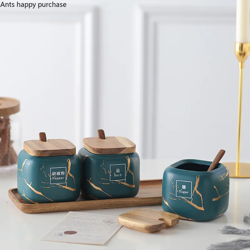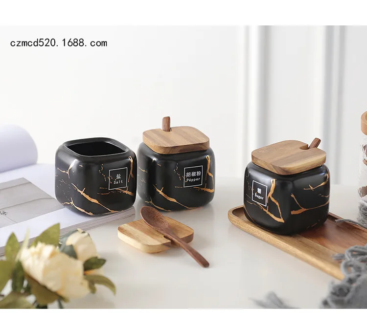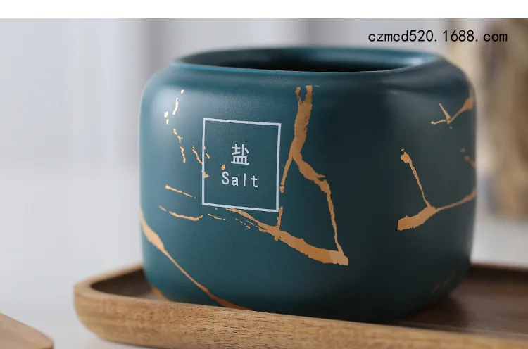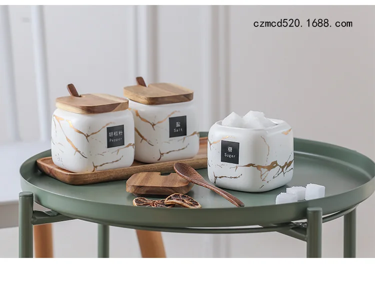 Nordycki kreatywny ceramika złoty marmur przyprawa zbiornik zestaw peeling strona główna kuchnia solniczka organizacja przechowywania pojemnik na jedzenie