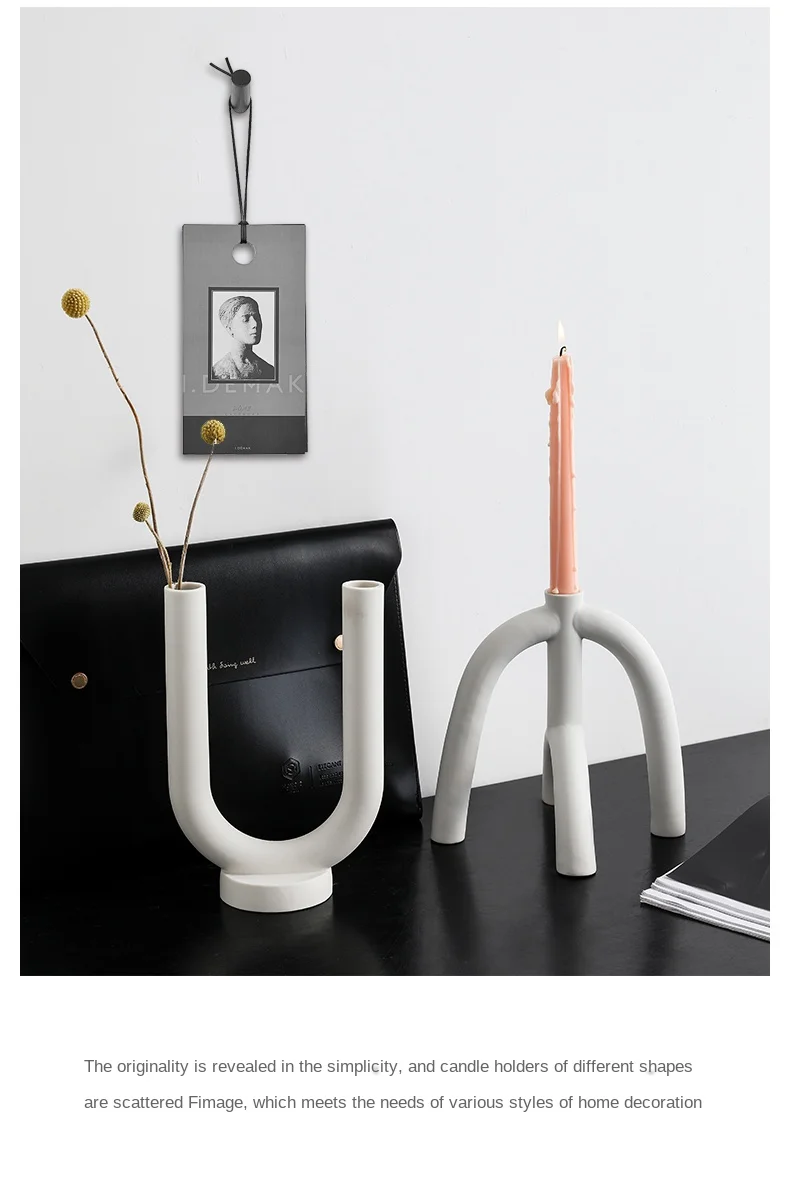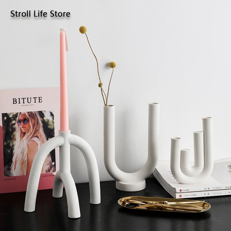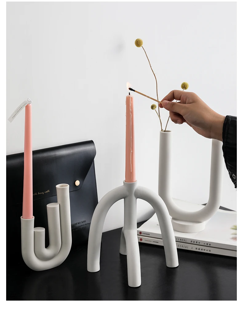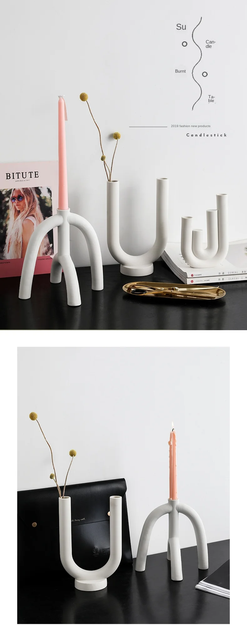Nordycki kreatywny świecznik ceramiczny biała świeca posiadacze fajka wodna nowoczesny salon świecznik ozdoba domu prezent FC455
