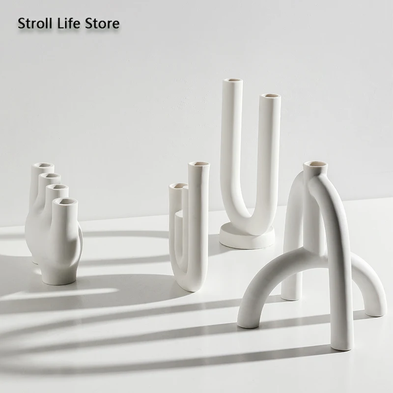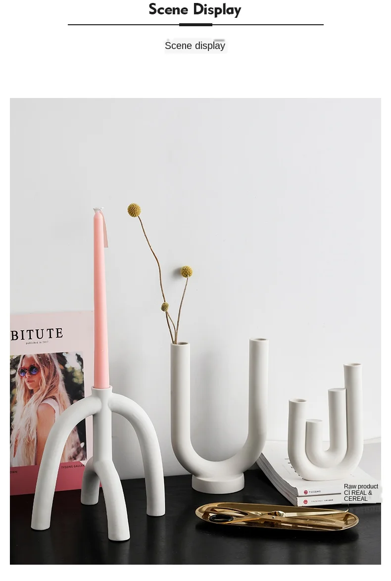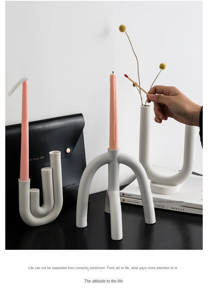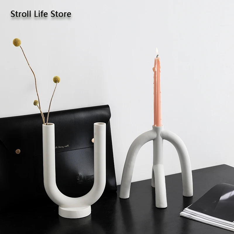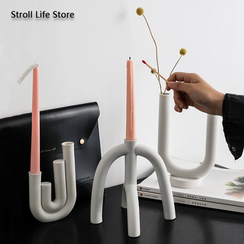 Nordycki kreatywny świecznik ceramiczny biała świeca posiadacze fajka wodna nowoczesny salon świecznik ozdoba domu prezent FC455