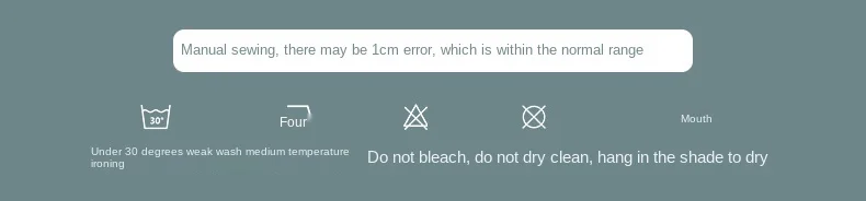 Zaleca się pranie ręczne i suszenie na powietrzu. Można prać w pralce lub wirować na sucho. Po wyschnięciu użyj żelazko elektryczne do prasowania tkaniny bawełnianej (wysoka temperatura), tak, aby wybrać prasowanie parowe.