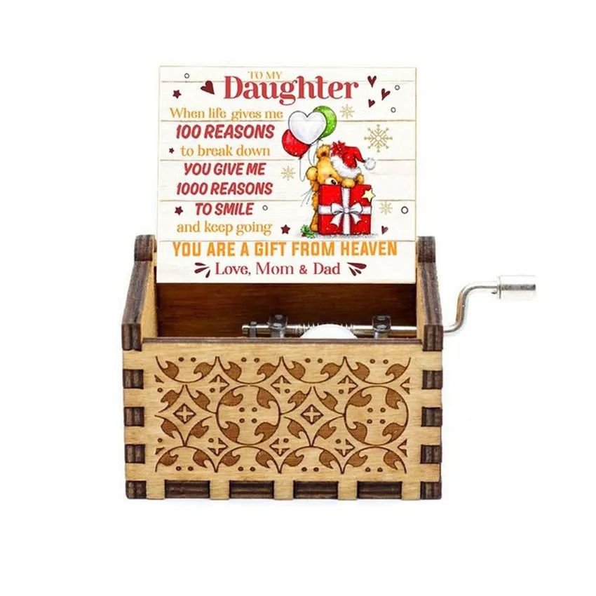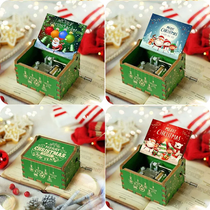 Nowa drewniana ręka korba pozytywka wesołych świąt motyw muzyczny jurajski Park pozytywka do mojej żony świąteczny prezent urodzinowy