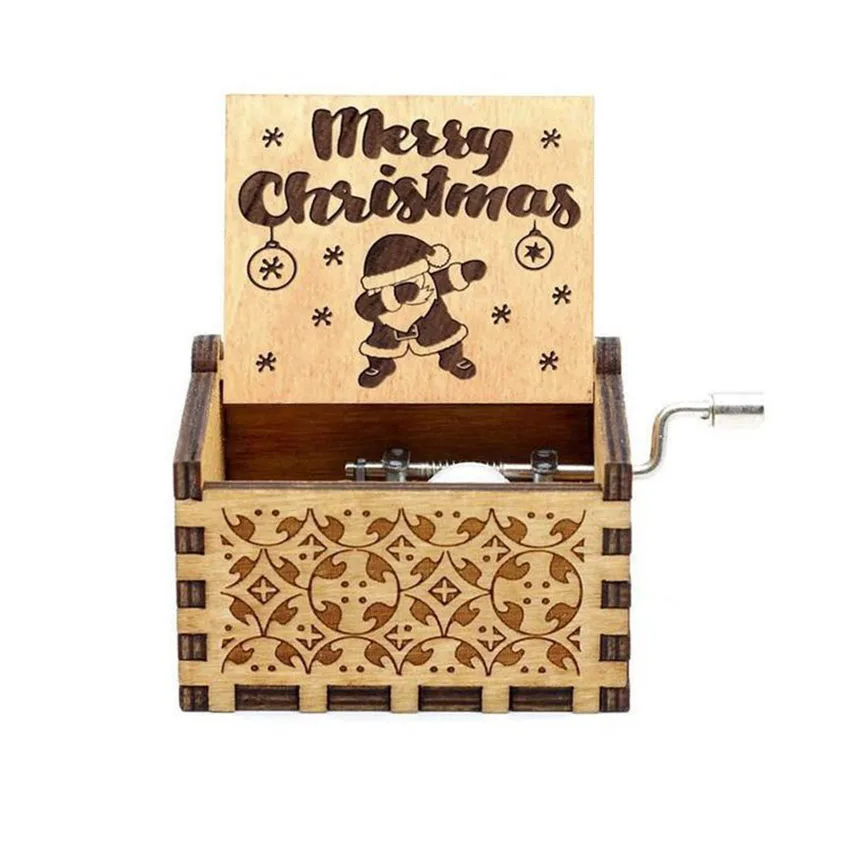 Nowa drewniana ręka korba pozytywka wesołych świąt motyw muzyczny jurajski Park pozytywka do mojej żony Halloween świąteczny prezent urodzinowy