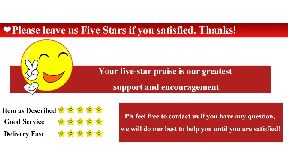 2) proszę zostawić nam pozytywne opinie (5 gwiazdek), gdy jesteś zadowolony z zakupu.