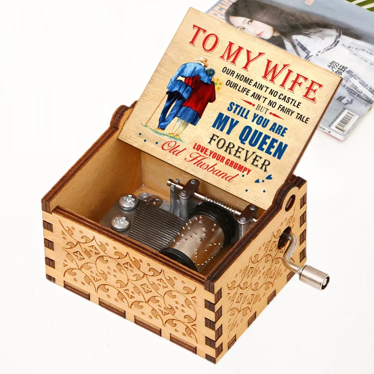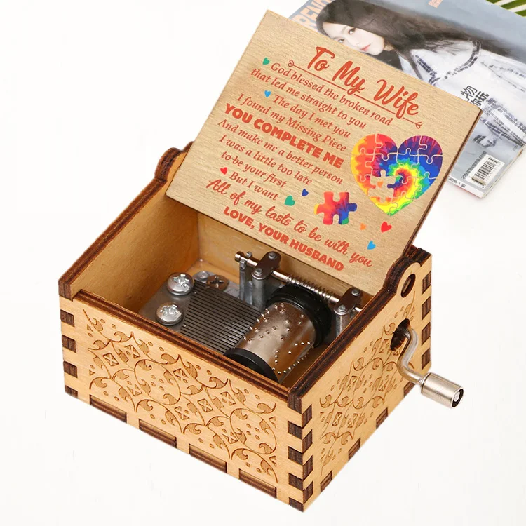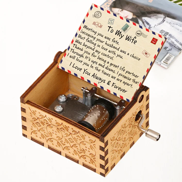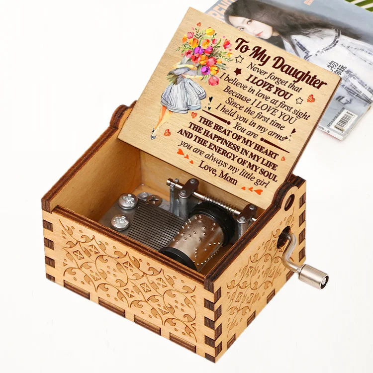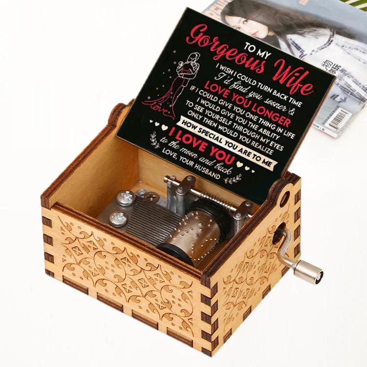 Nowa muzyka Box miłość mama tata do żony syn córka drewniana ręka boże narodzenie urodziny walentynki prezent grawerowane kocha wystrój