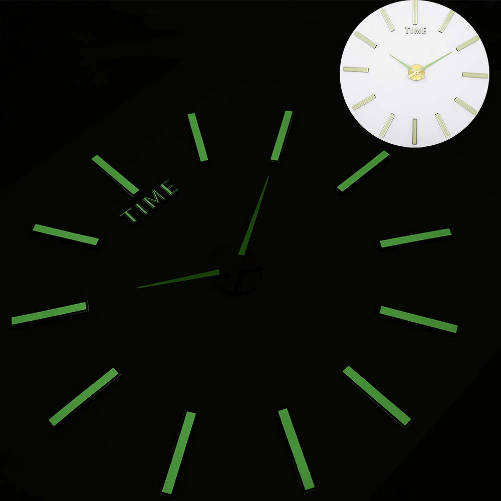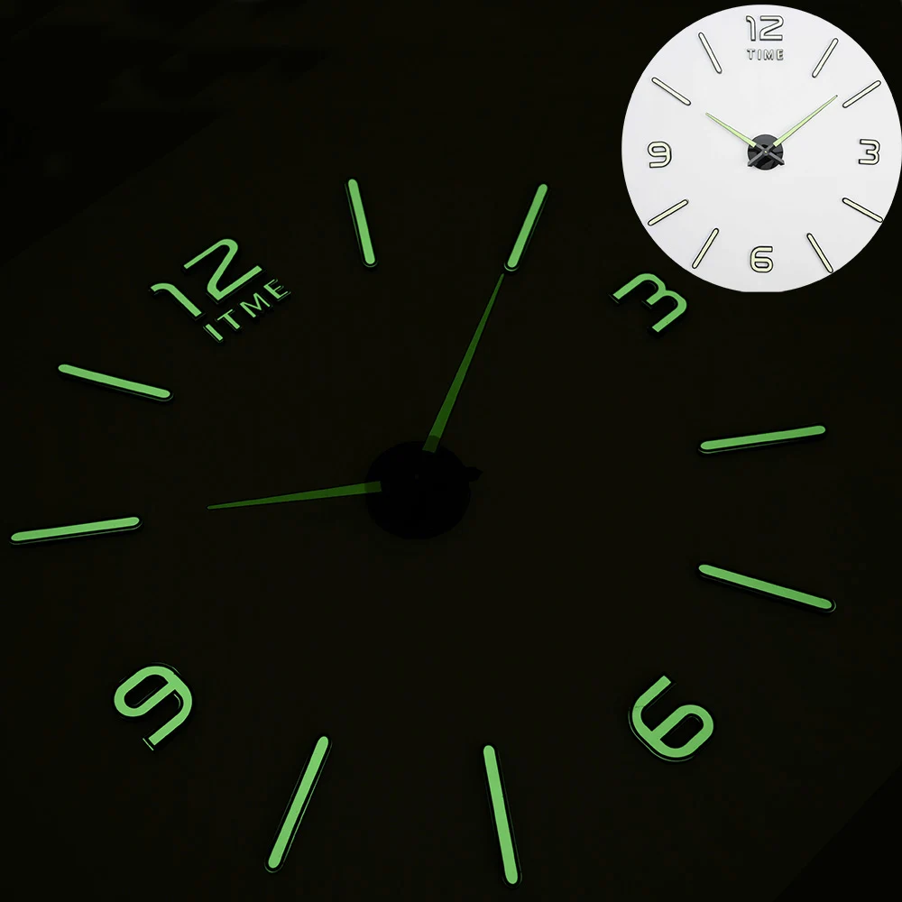 Nowa świecąca naklejka na ścianę zegary Largre zegarek na rękę Horloge 3D DIY lustro akrylowe naklejki kwarcowe Duvar Saat Klock nowoczesne wyciszenie