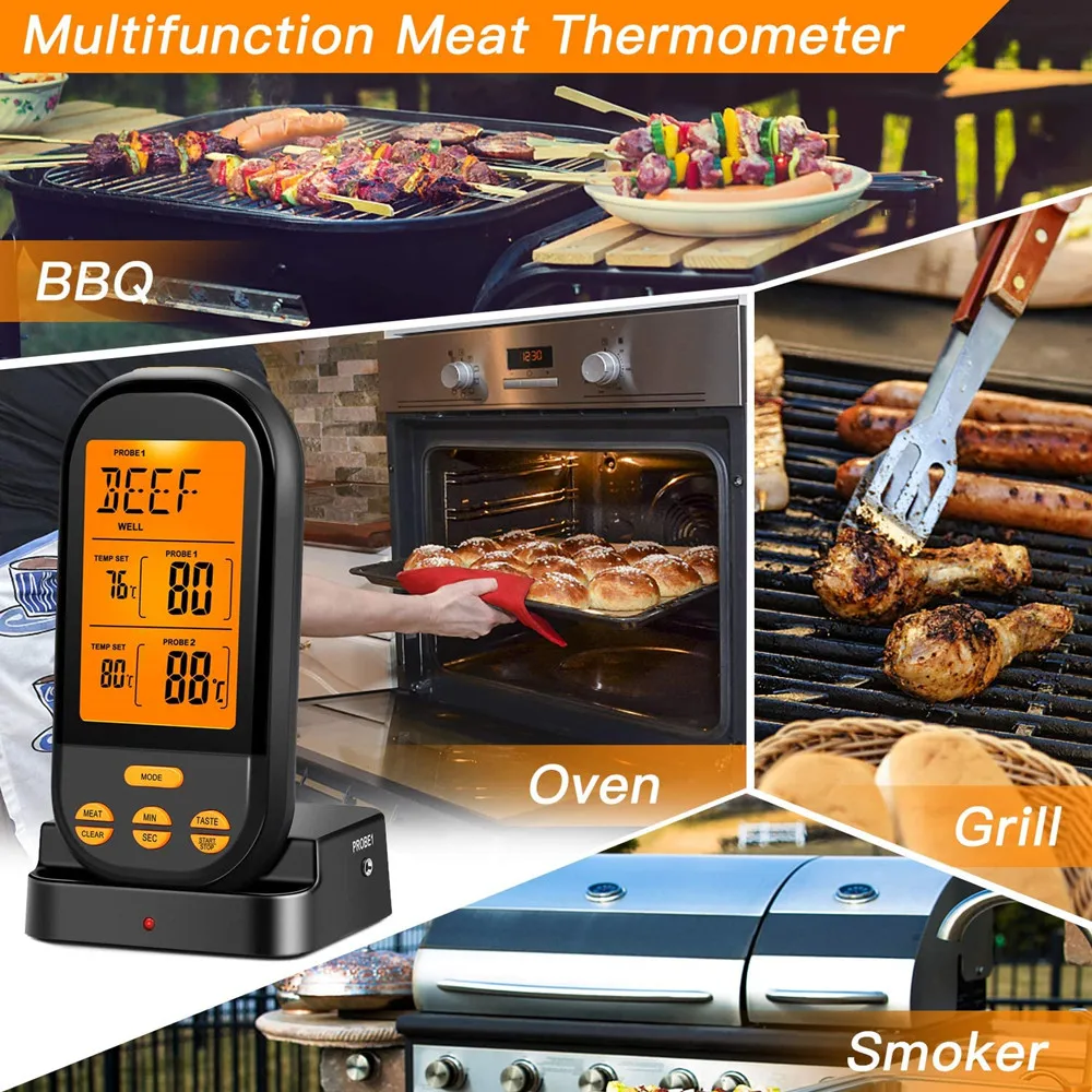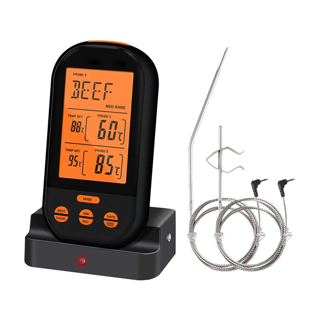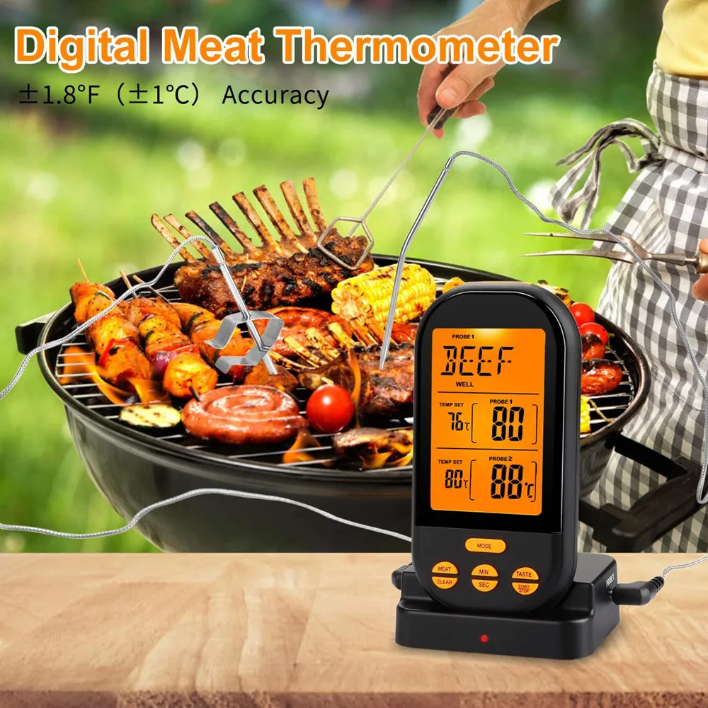 Bezprzewodowy termometr do mięs, zdalne gotowanie żywności Grill cyfrowy termometr grillowy z podwójna sonda do piekarnika palacz Grill Grill termometr