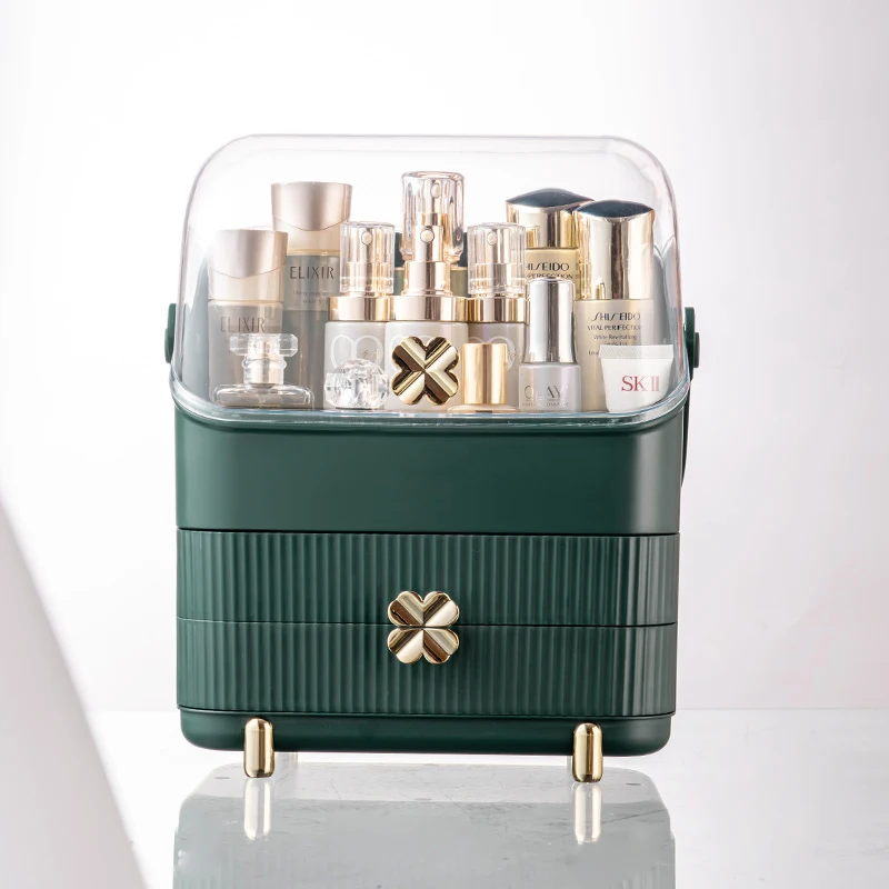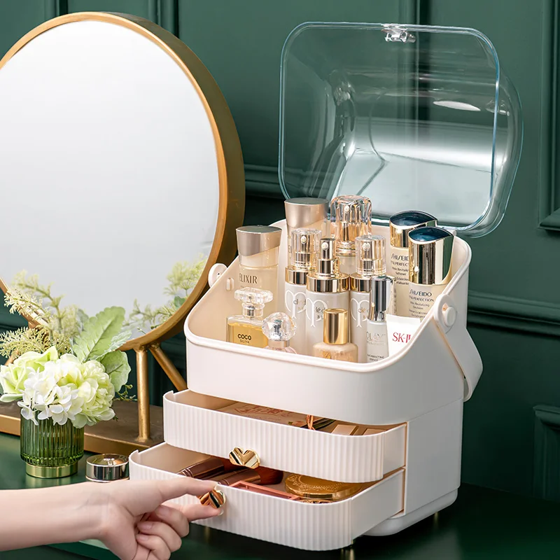 Nowe przezroczyste pudełko do przechowywania kosmetyków akrylowe biurko na kosmetyki do makijażu lub biżuterię kosmetyczka pyłoszczelna szuflada Organizer na kosmetyki