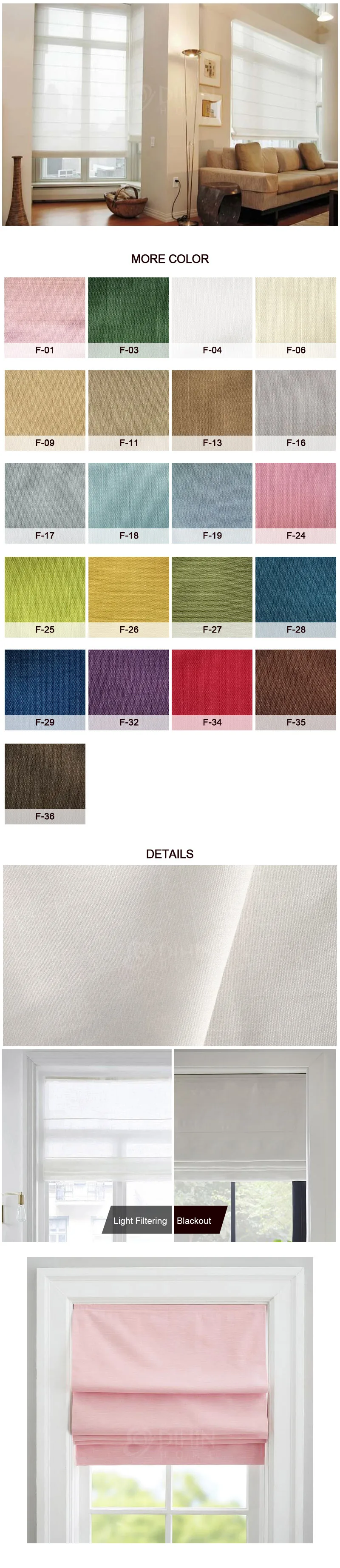 Nowoczesne 20 + kolory bawełniana tkanina lniana płaskie rolety rzymskie niestandardowe okno zasłony do salonu w zestawie mechanizm