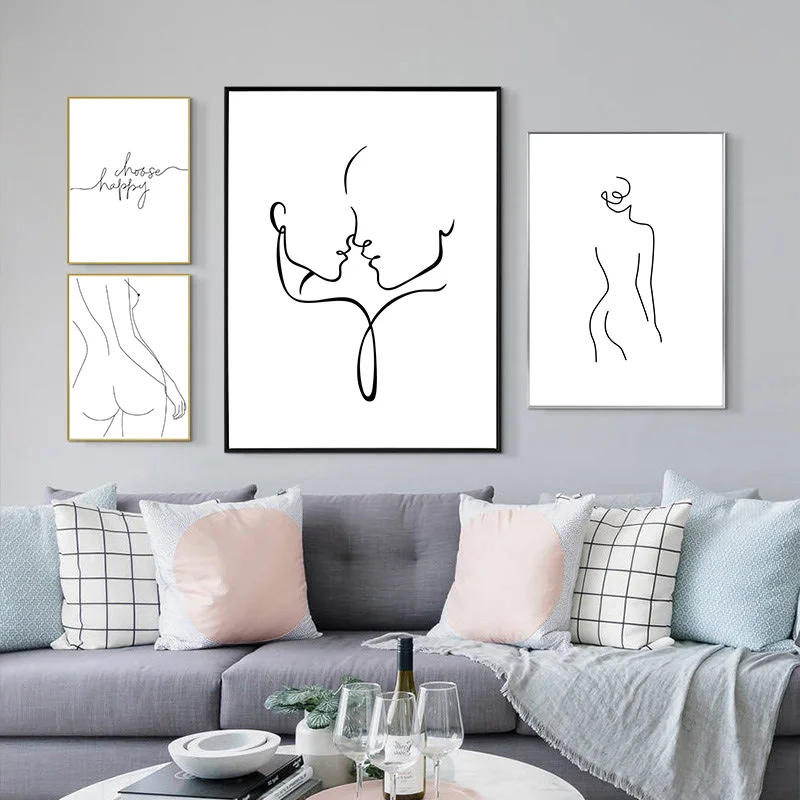 Nowoczesny abstrakcyjny obraz ozdobny Nordic płótno malarstwo ścienne sztuka rysunek linia rysunek plakaty i druki do salonu
