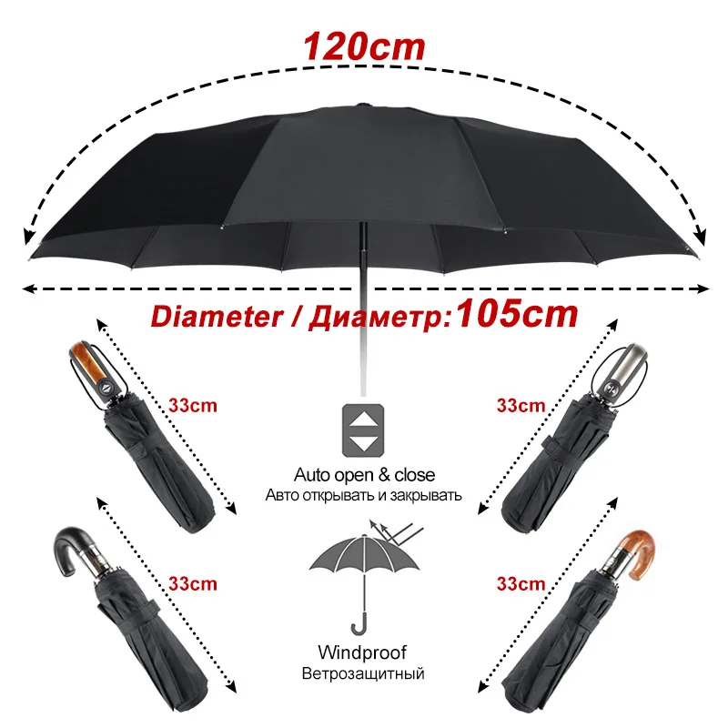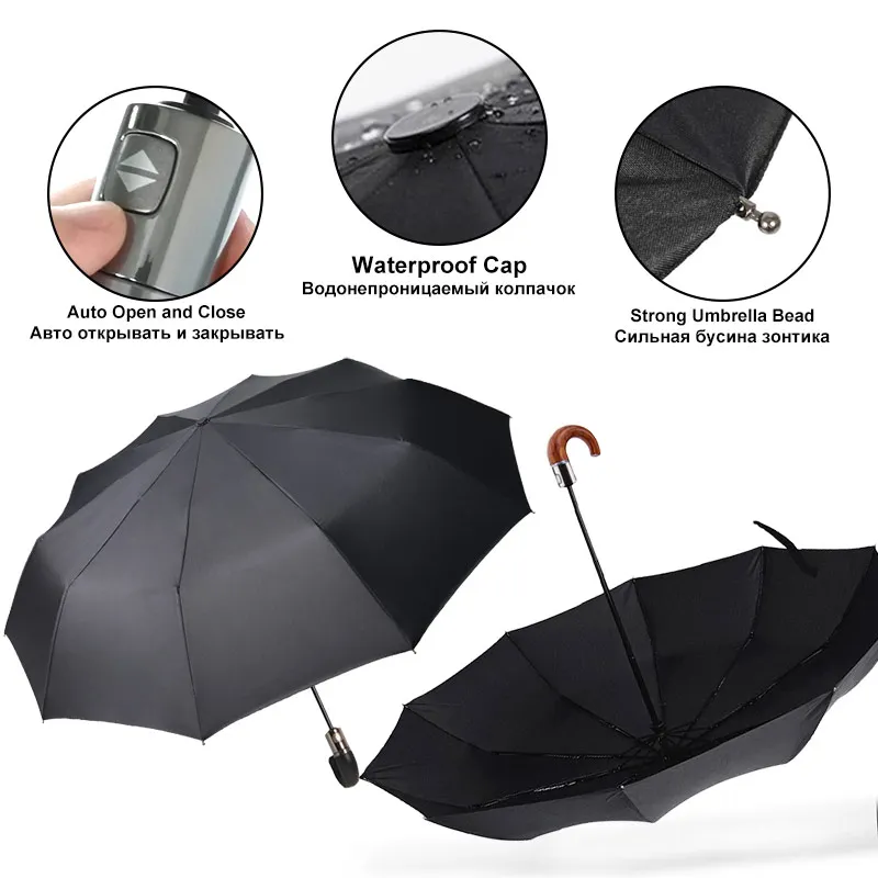 Be the first to review “Odporny na wiatr 3-krotny parasol automatyczny deszcz kobiety skórzany drewniany uchwyt brytyjski biznes styl parasol męski prezent duży parasol”
