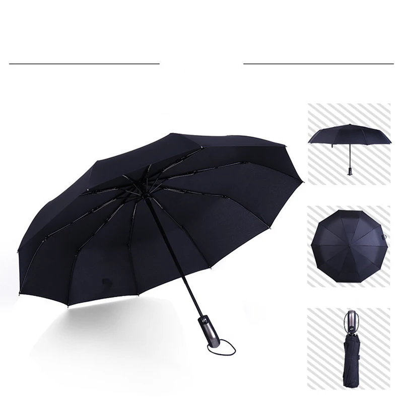 Odporny na wiatr, w pełni automatyczna, potrójne Parasol dziesięć kości Auto duża wiatroszczelna Parasol biznesowy deszcz czarna powłoka Parasol