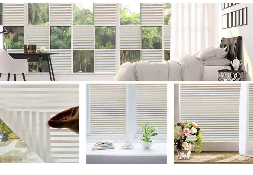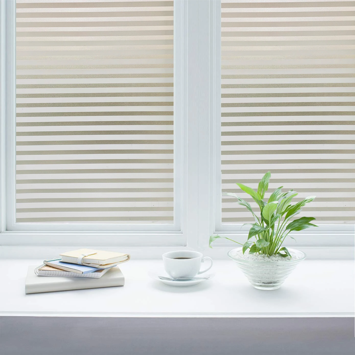 WXSHSH Stripe Window film-częściowa ochrona prywatności rozmywa niechciane widoki, wzór w paski i prosty matowy wzór mogą stworzyć delikatny wygląd i wysokiej klasy styl w oknach w domu, kuchni, biurze, sala konferencyjna lub wynajem apartament…