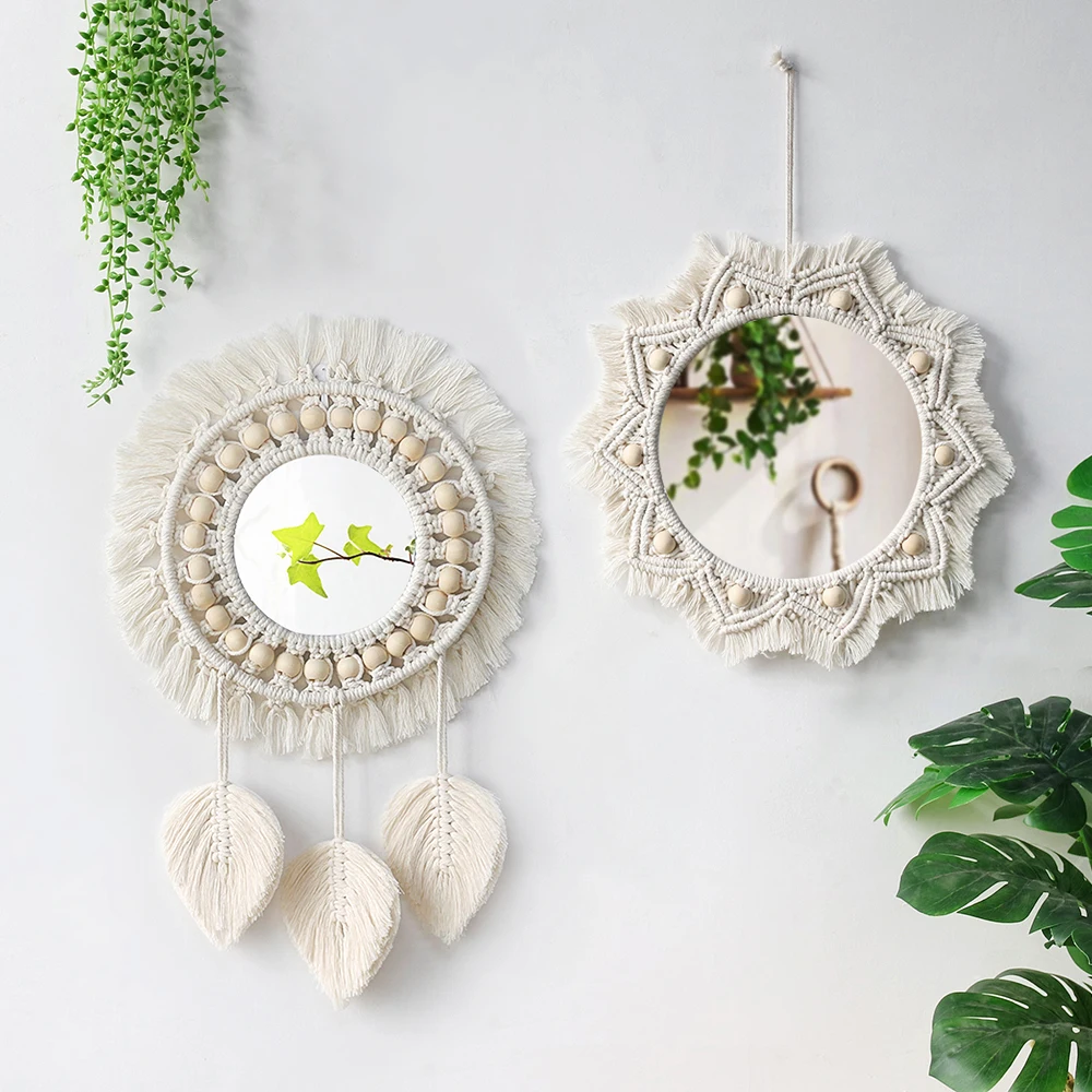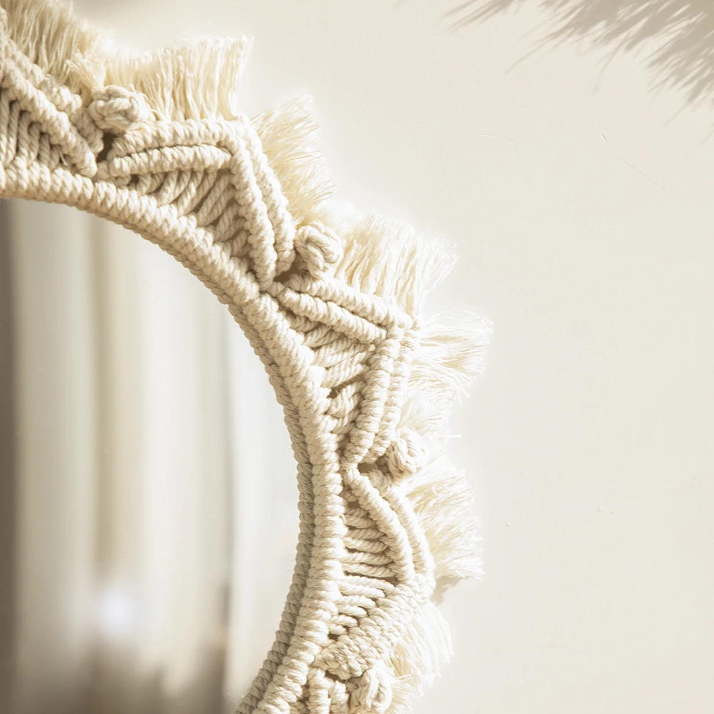 3. Wspaniały minimalistyczny Design: unikalne artystyczne lustro makramy to świetny sposób na dodanie pionowej przestrzeni! Geometryczne lustro makramy przyciągnie oko i sprawi, że twój pokój będzie elegancki.