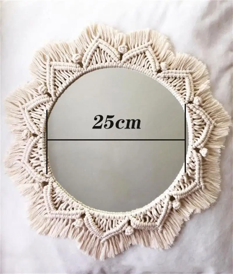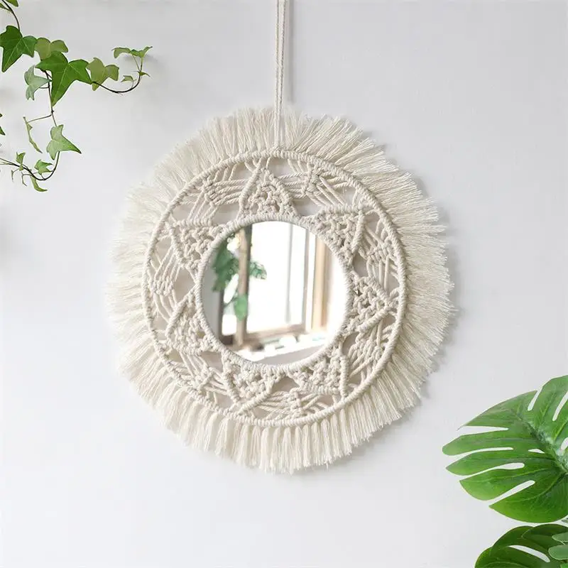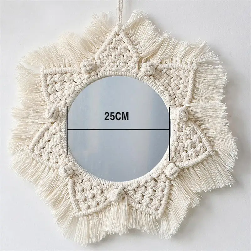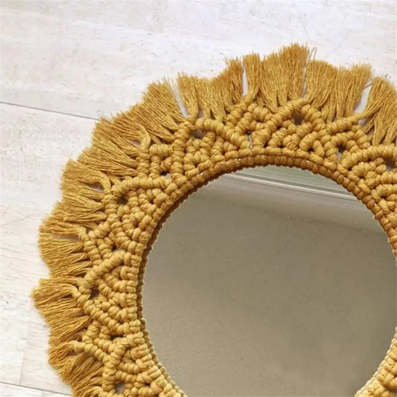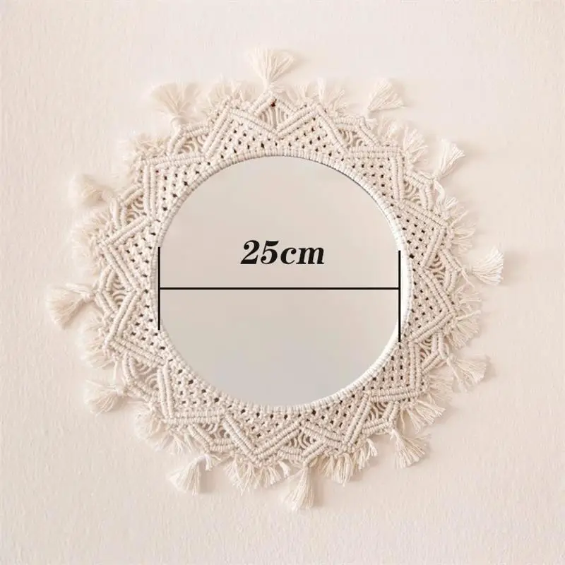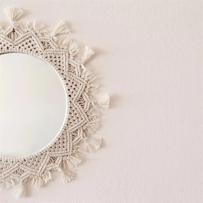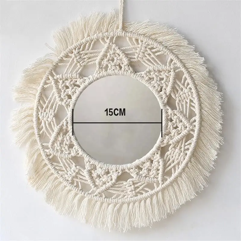 Wiszące lustro ścienne z frędzlami Macrame Round Boho dekoracja lustra do mieszkania salon sypialnia