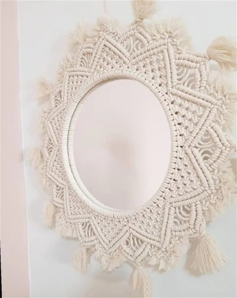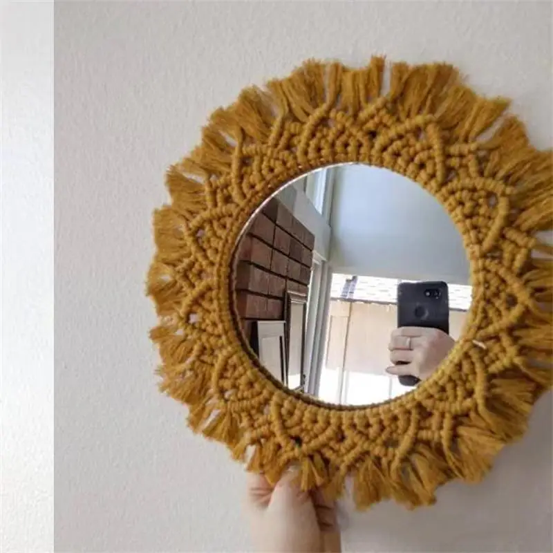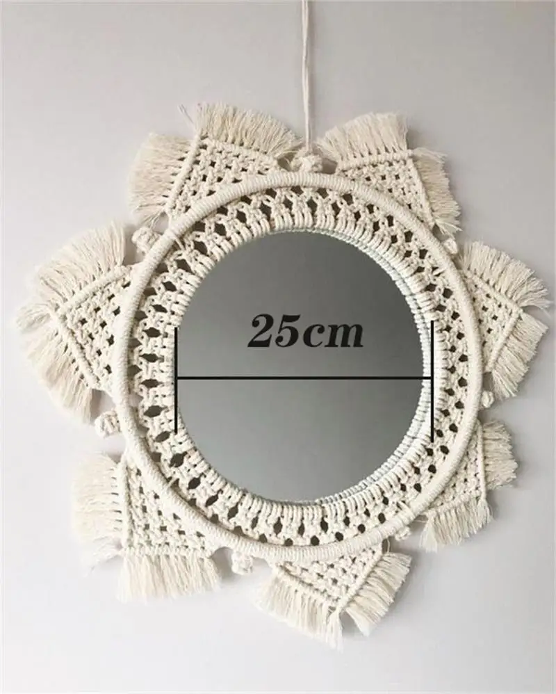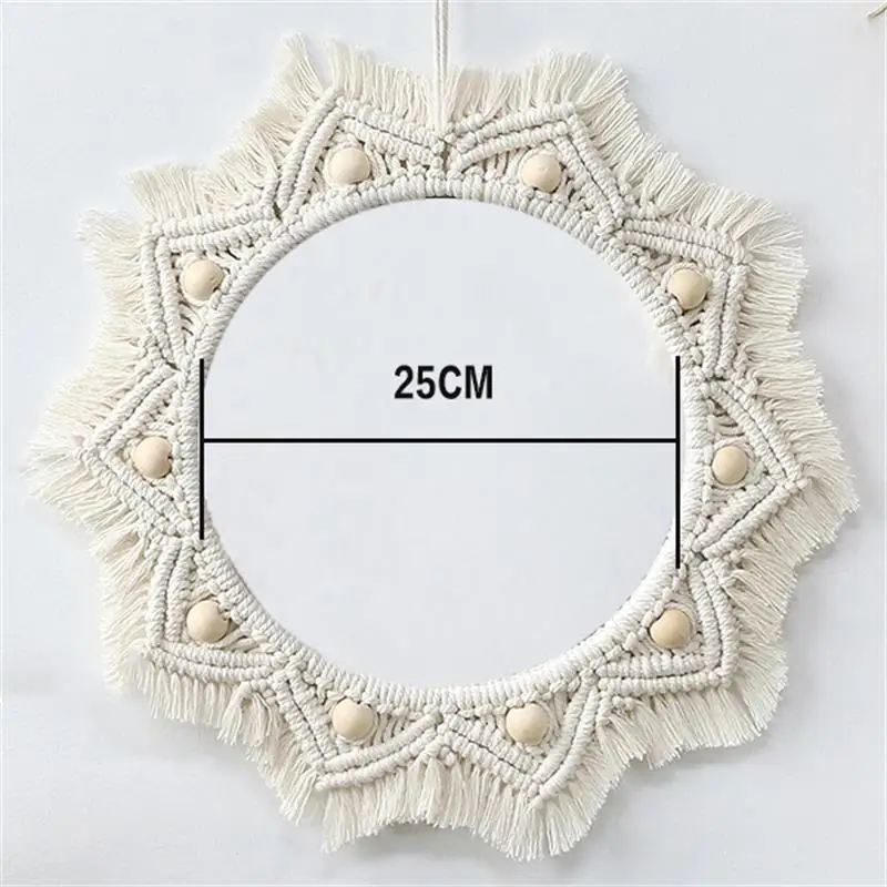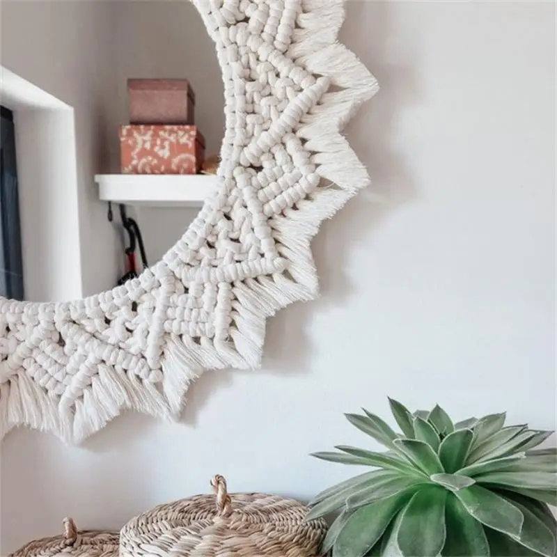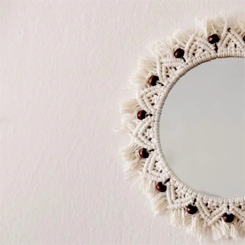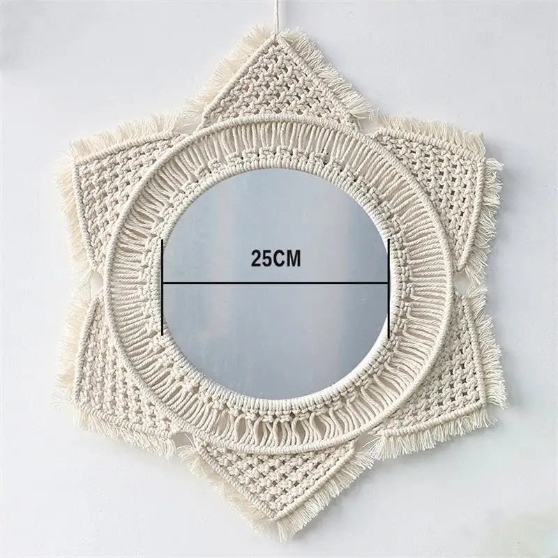 Wiszące lustro ścienne z frędzlami Macrame Round Boho dekoracja lustra do mieszkania salon sypialnia