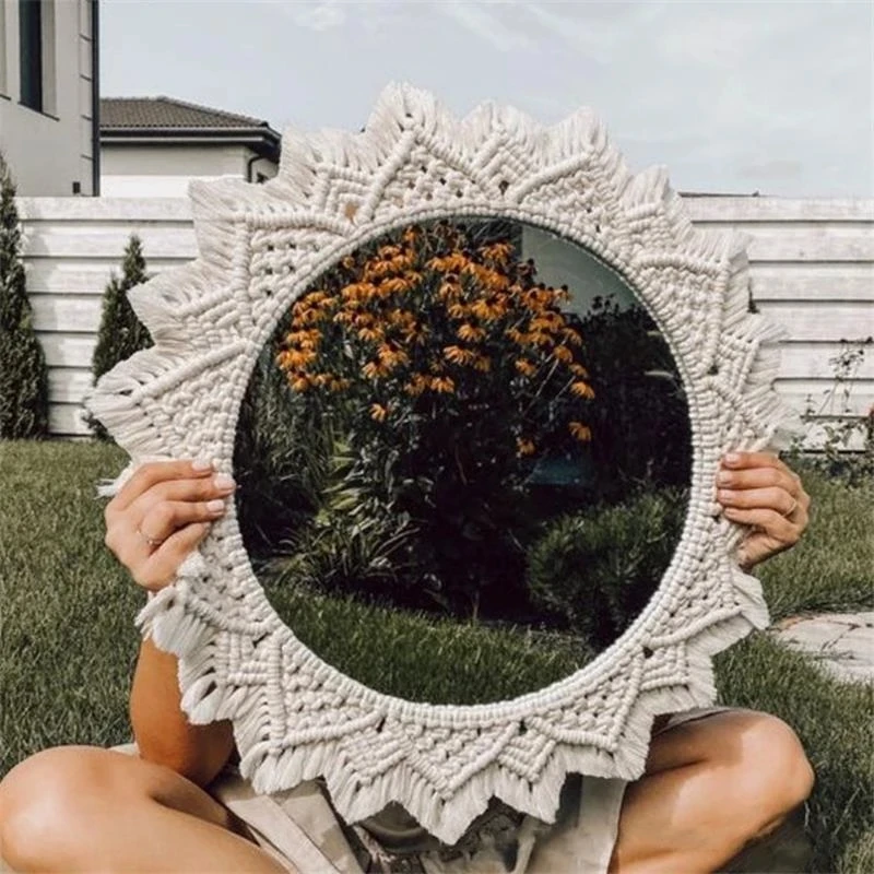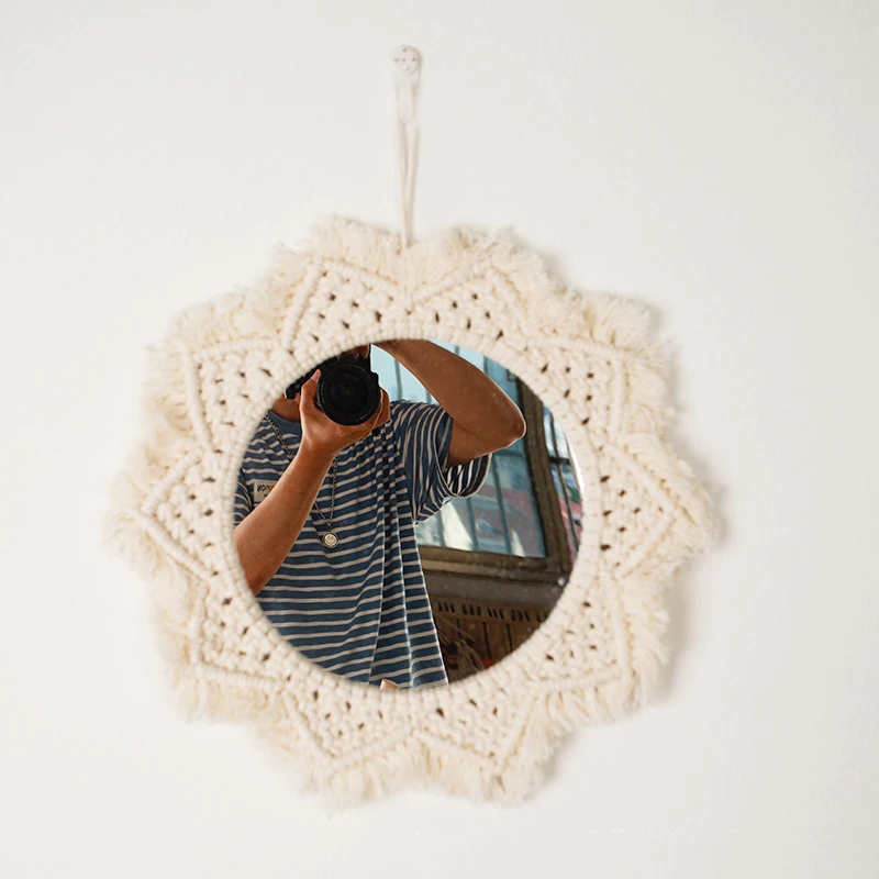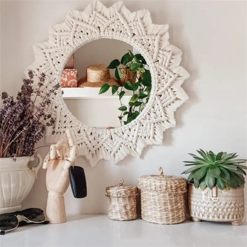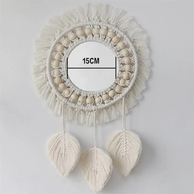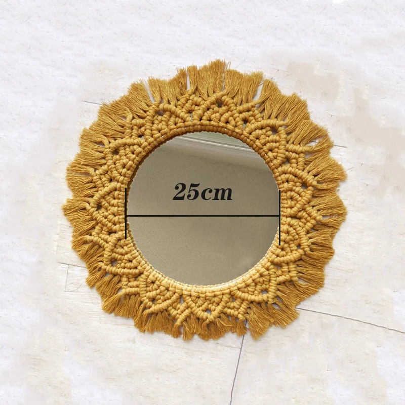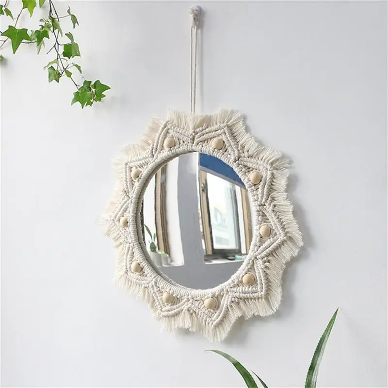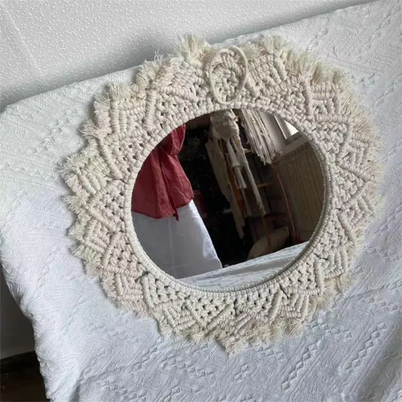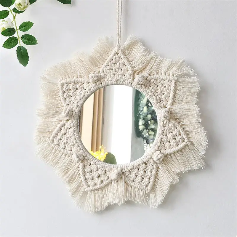 Wiszące lustro ścienne z frędzlami Macrame Round Boho dekoracja lustra do mieszkania salon sypialnia
