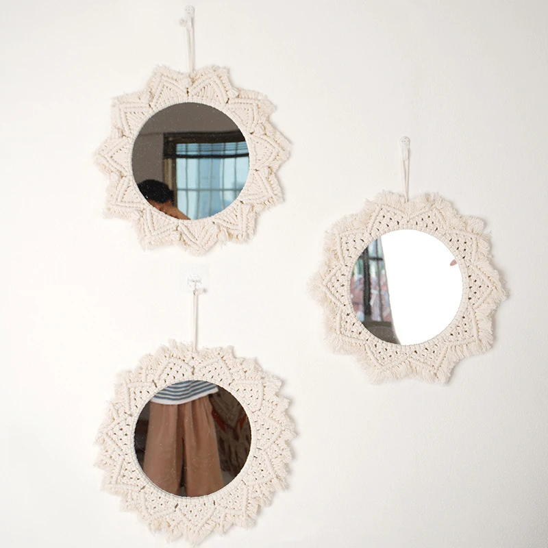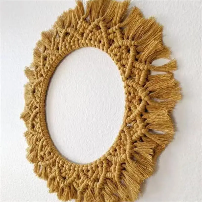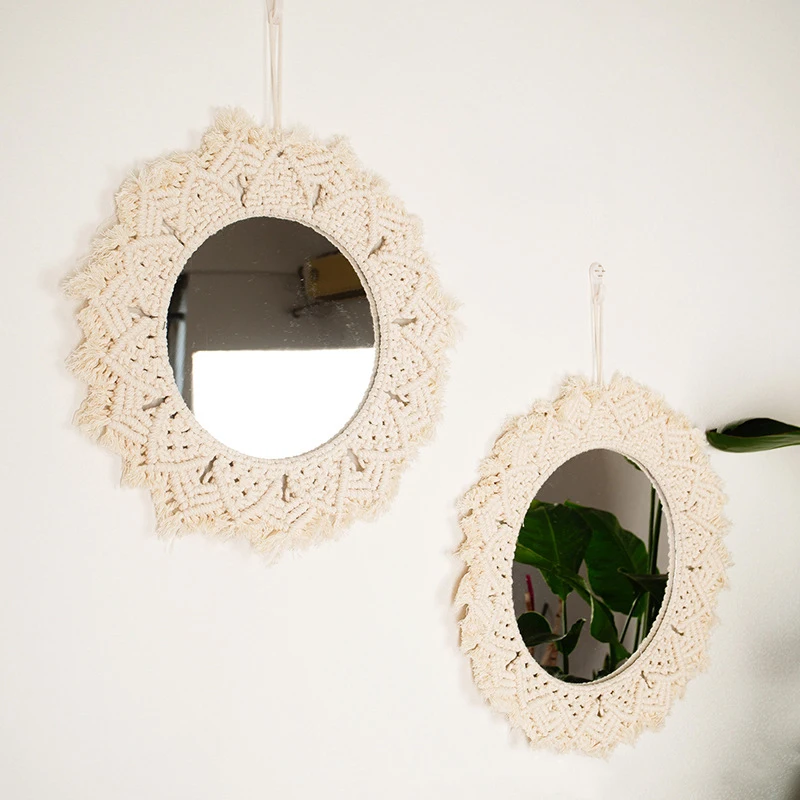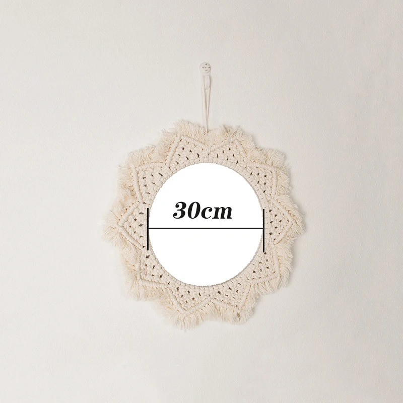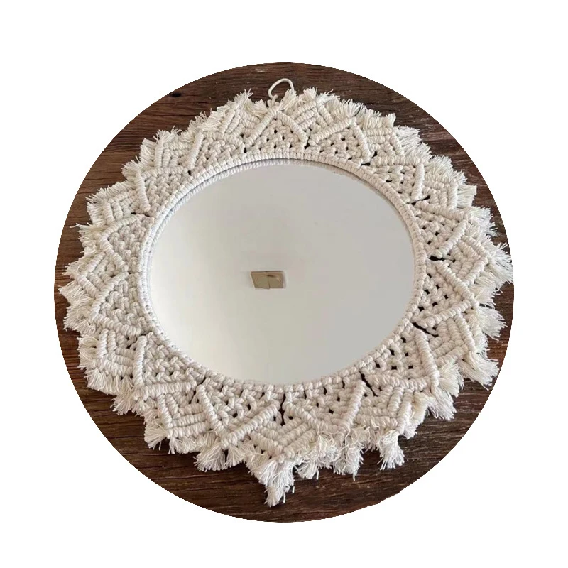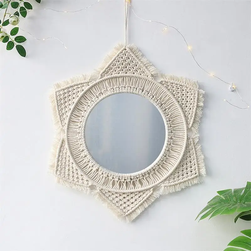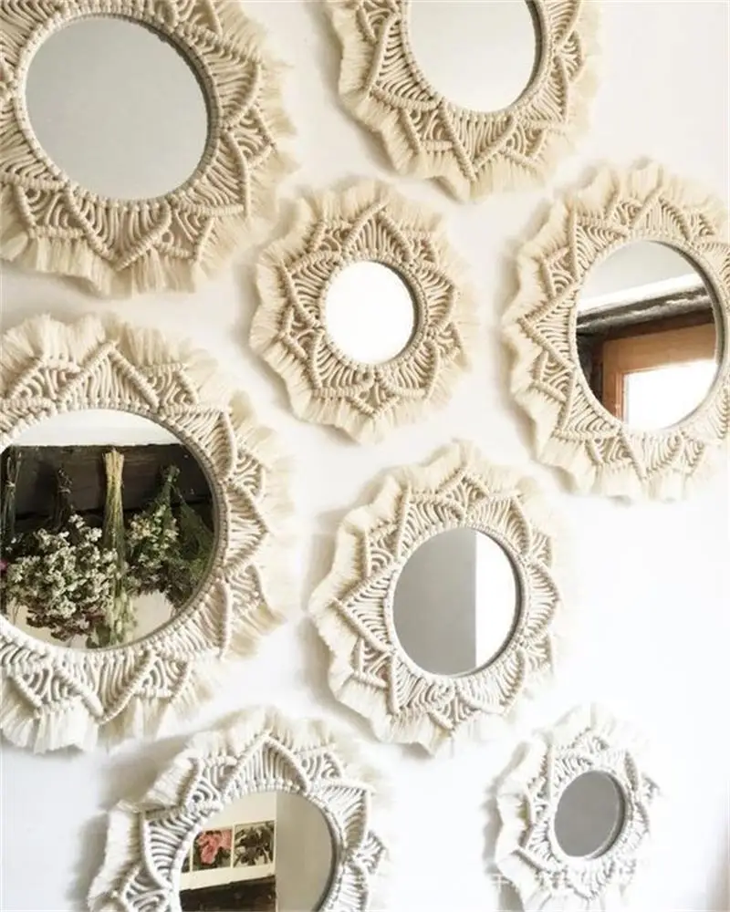 Wiszące lustro ścienne z frędzlami Macrame Round Boho dekoracja lustra do mieszkania salon sypialnia
