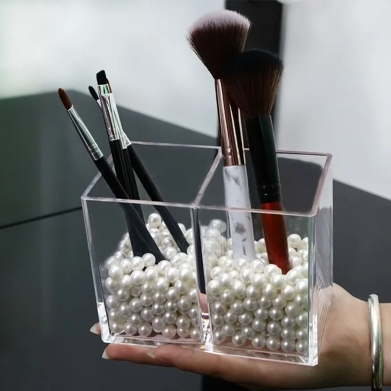 Organizer Box 2 siatki akrylowy pojemnik na pędzle do makijażu tuba przeźroczyste pudełko do przechowywania Student Organizer na biurko kwadratowy obsadka do pióra