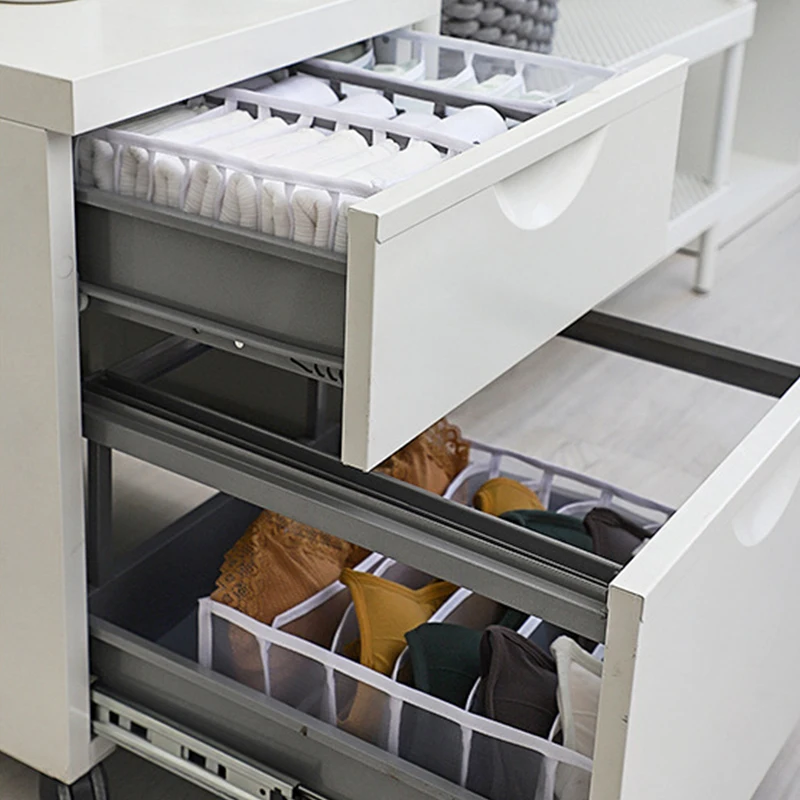 Funkcje1/przechowuj swoje przedmioty szybko i starannie, dzięki czemu twój przedmiot jest łatwy do znalezienia 2/wykonany z siatka nylonowa, bez zapachu, zmywalny i trwały 3/nadaje się do szafy, szafa lub szuflady 4/sortuj bieliznę, biustonosze, skarpetki, krawaty itp