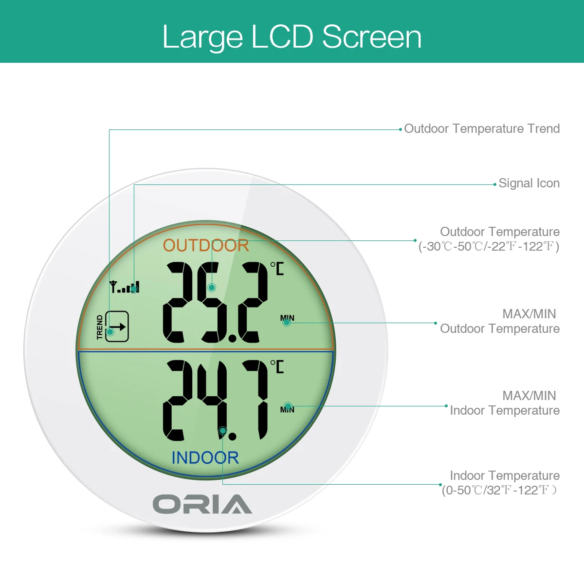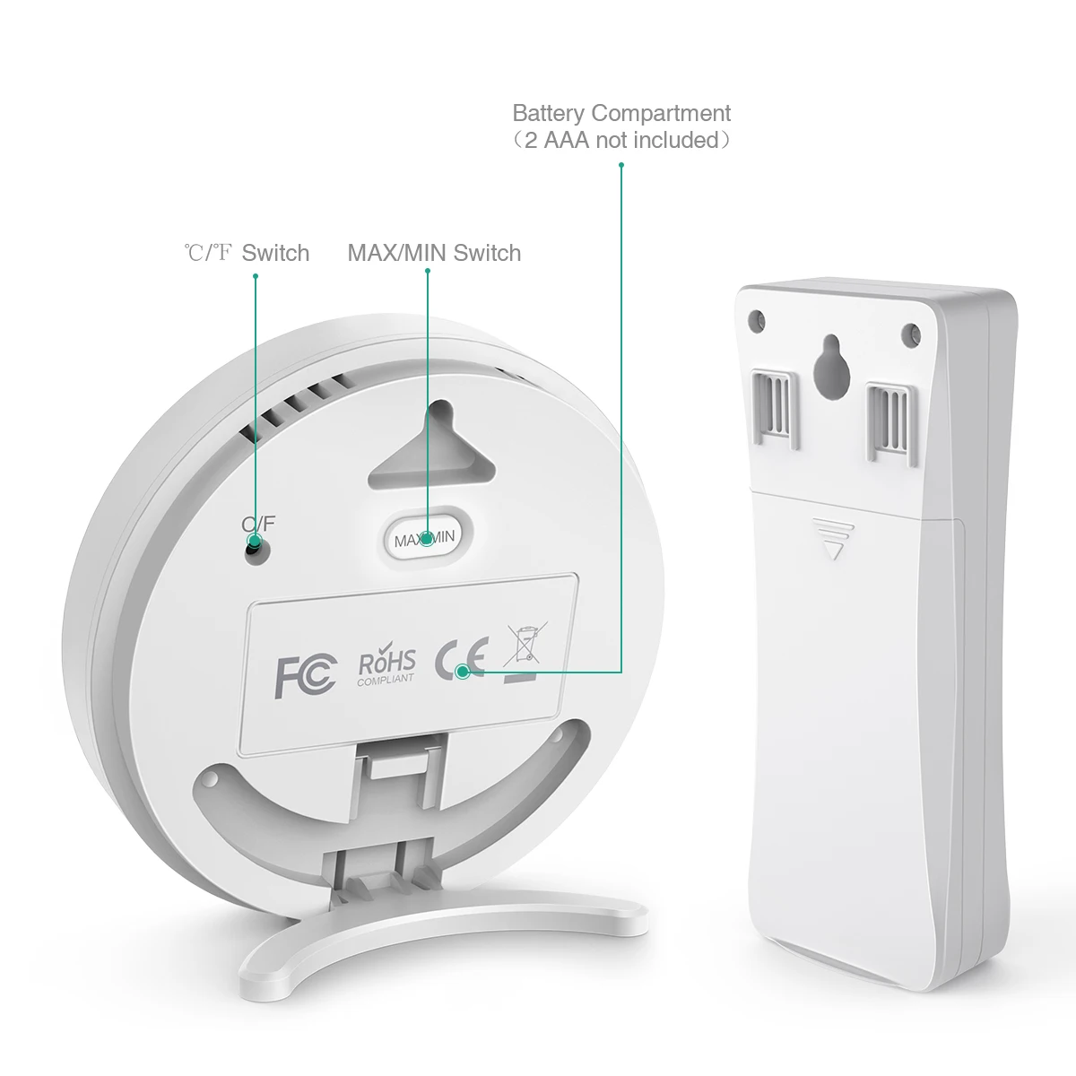 【Wielofunkcyjny termometr】-wyświetla jednocześnie temperaturę wewnętrzną/temperatura zewnętrzna i trendy strzałek dla temperatura zewnętrzna. Naciśnij przycisk „C/F”, aby przełączyć ° C/° F, aby wyświetlić temperaturę dla twojej osobowości. (Temperatura zewnętrzna:-30 ℃-50 ℃/-22 ℉-122 ℉; Temperatura wewnętrzna: 0-50 ℃/32 ℉-122 ℉)