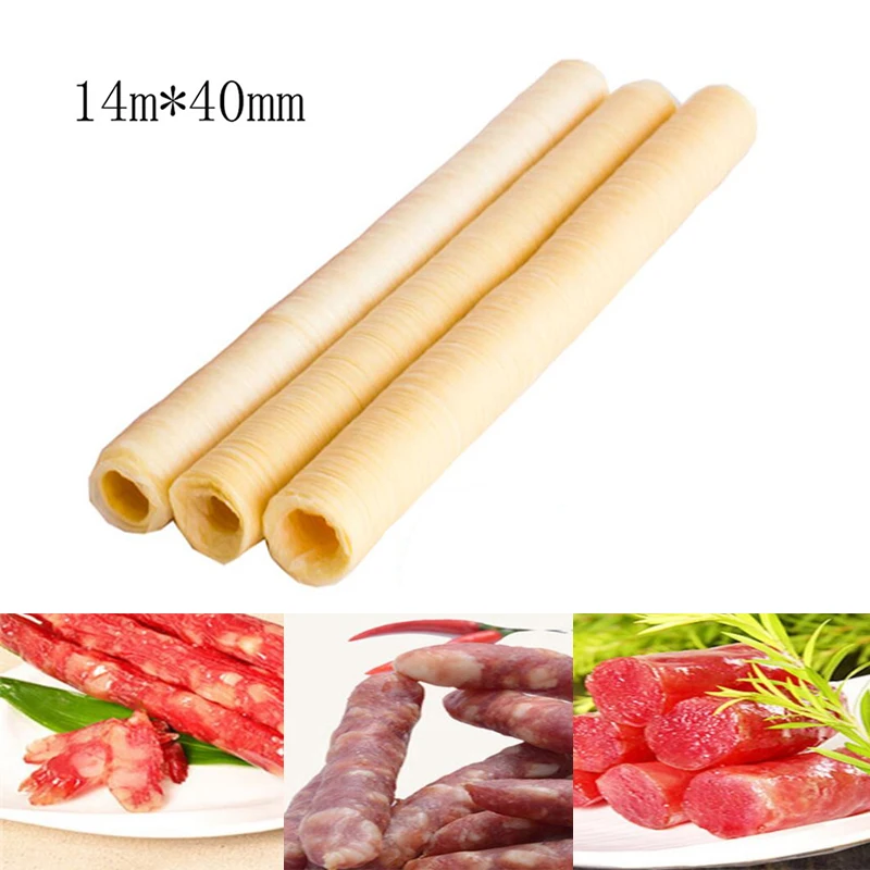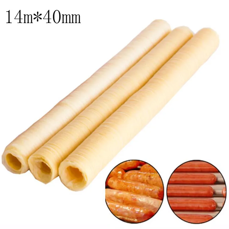 Osłonki do kiełbas narzędzia 14m * 26mm obudowa do kiełbasy Salami osłonka na parówki Hamburger narzędzie do gotowania Basters niejadalne osłonki