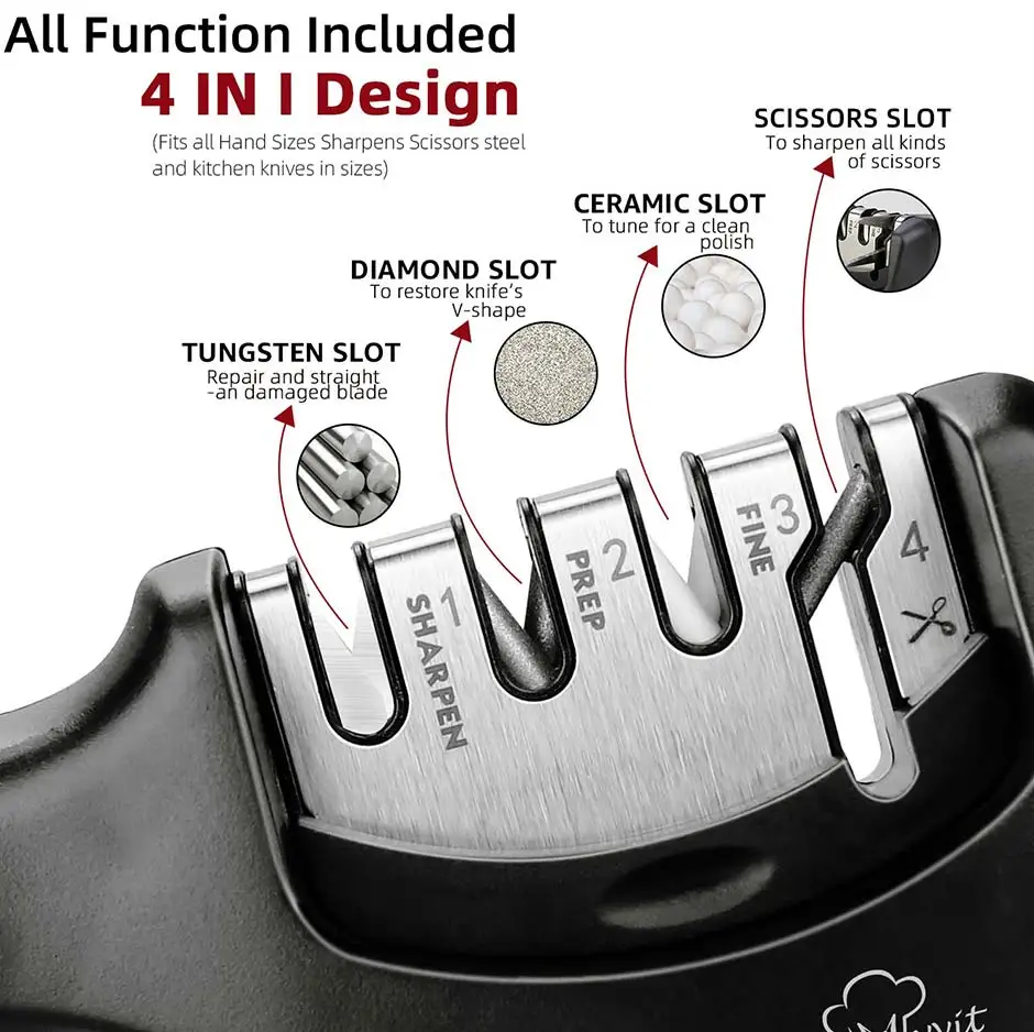 Ta ostrzałka działa świetnie na wszystkich rodzajach noży. Trzymaj noże ostre i gotowe do użycia. Jest bardzo łatwy w użyciu, bardzo wytrzymały i trwały.