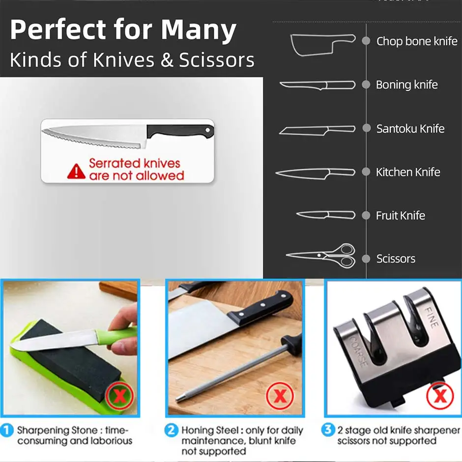 Daj swój węgiel lub noże ze stali nierdzewnej nowy wynajem na życie z profesjonalny nóż do ostrzenia. Przywróć swój prosty zestaw kuchenny, nóż myśliwski, składany kieszonkowy nóż i nożyczki i utrzymuj je w szlifie, aby zapewnić precyzyjne cięcie. Ostrzałka do noży. Do ostrzenia noży zestaw.