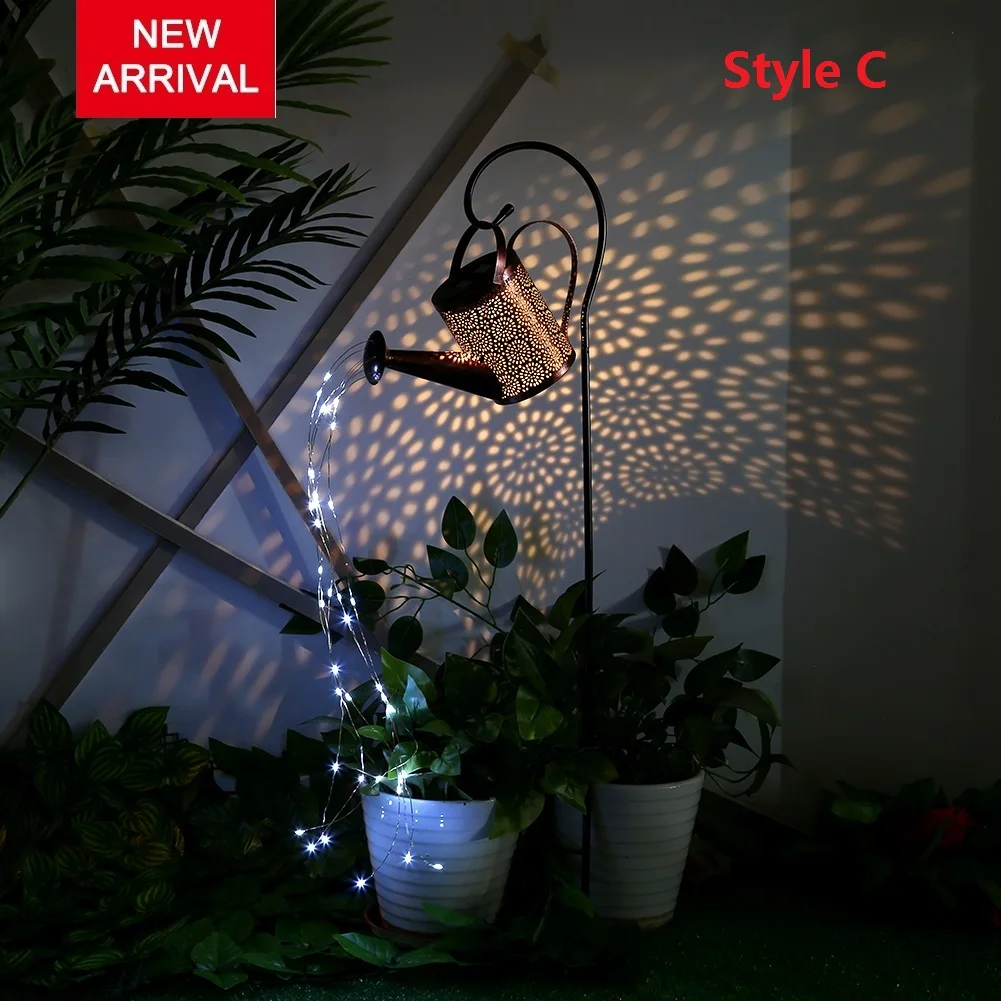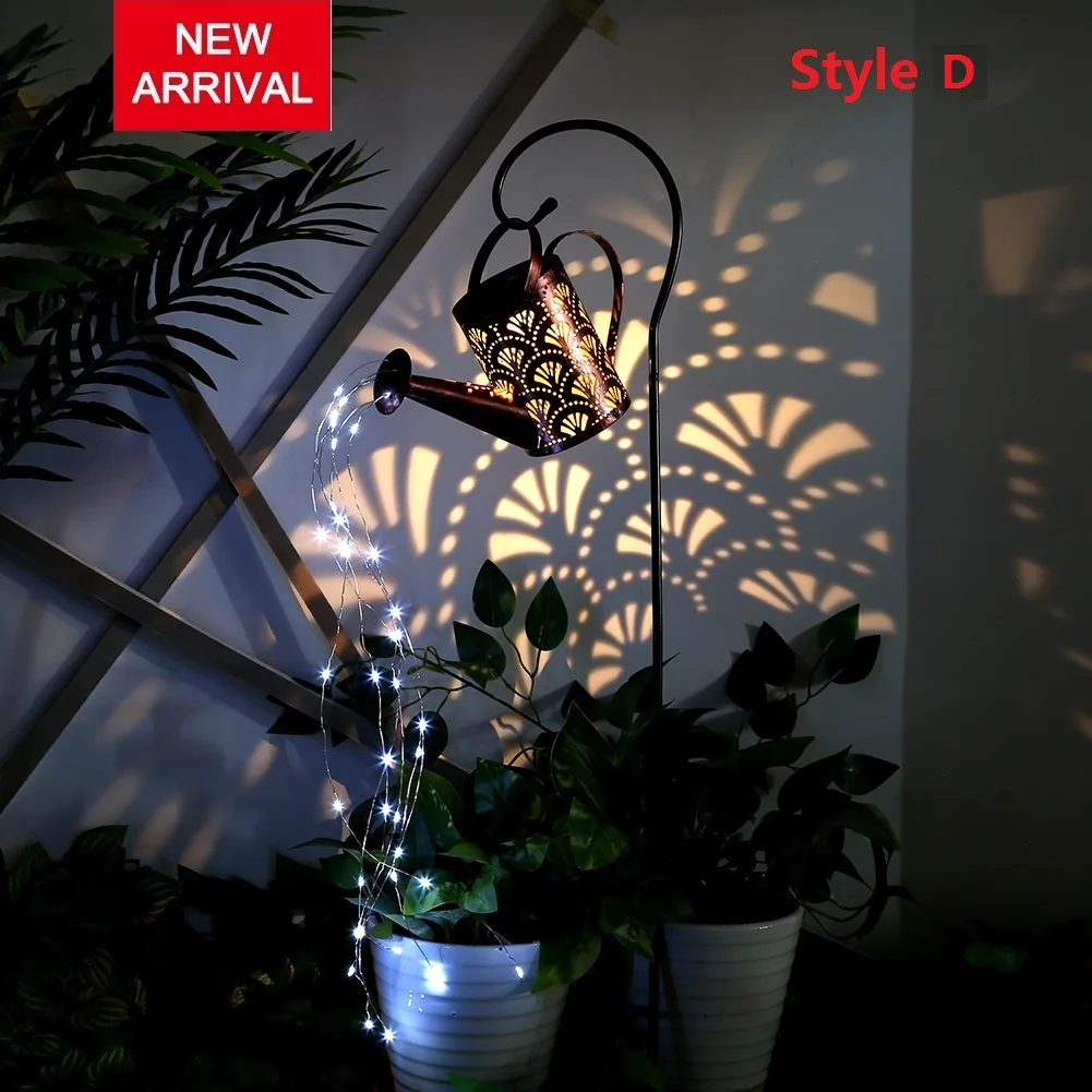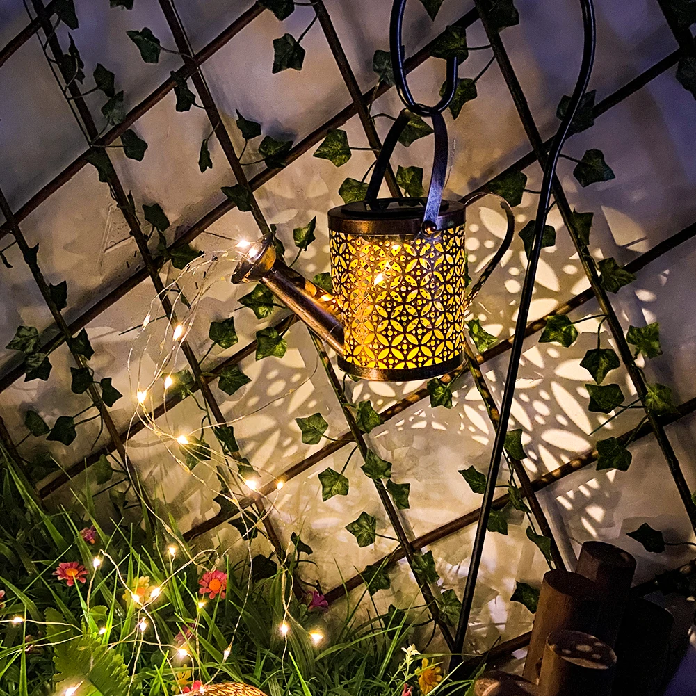 Kutego żelaza Hollow Out lampa metalowa konewka zasilana energią słoneczną zraszacze bajkowe oświetlenie LED ogrodowa wodoodporny prysznic światło