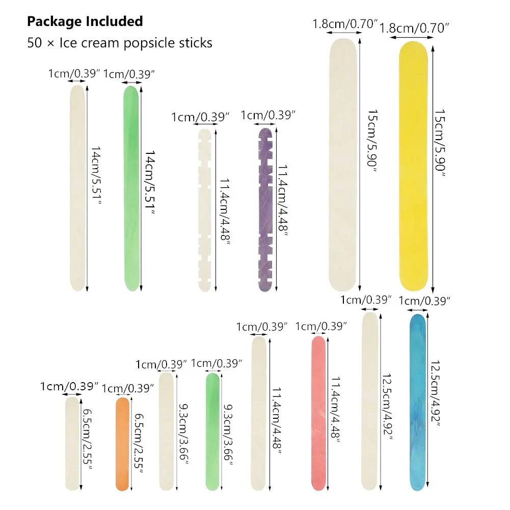 Zabawne i żywe jasne kolory! 50 patyczków w mieszanych kolorach lub naturalne kolory. Każdy kolorowy zestaw ma 6 jasnych kolorów-czerwony, pomarańczowy, żółty, zielony, niebieski i fioletowy.