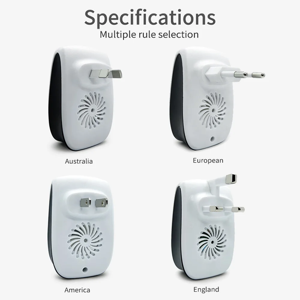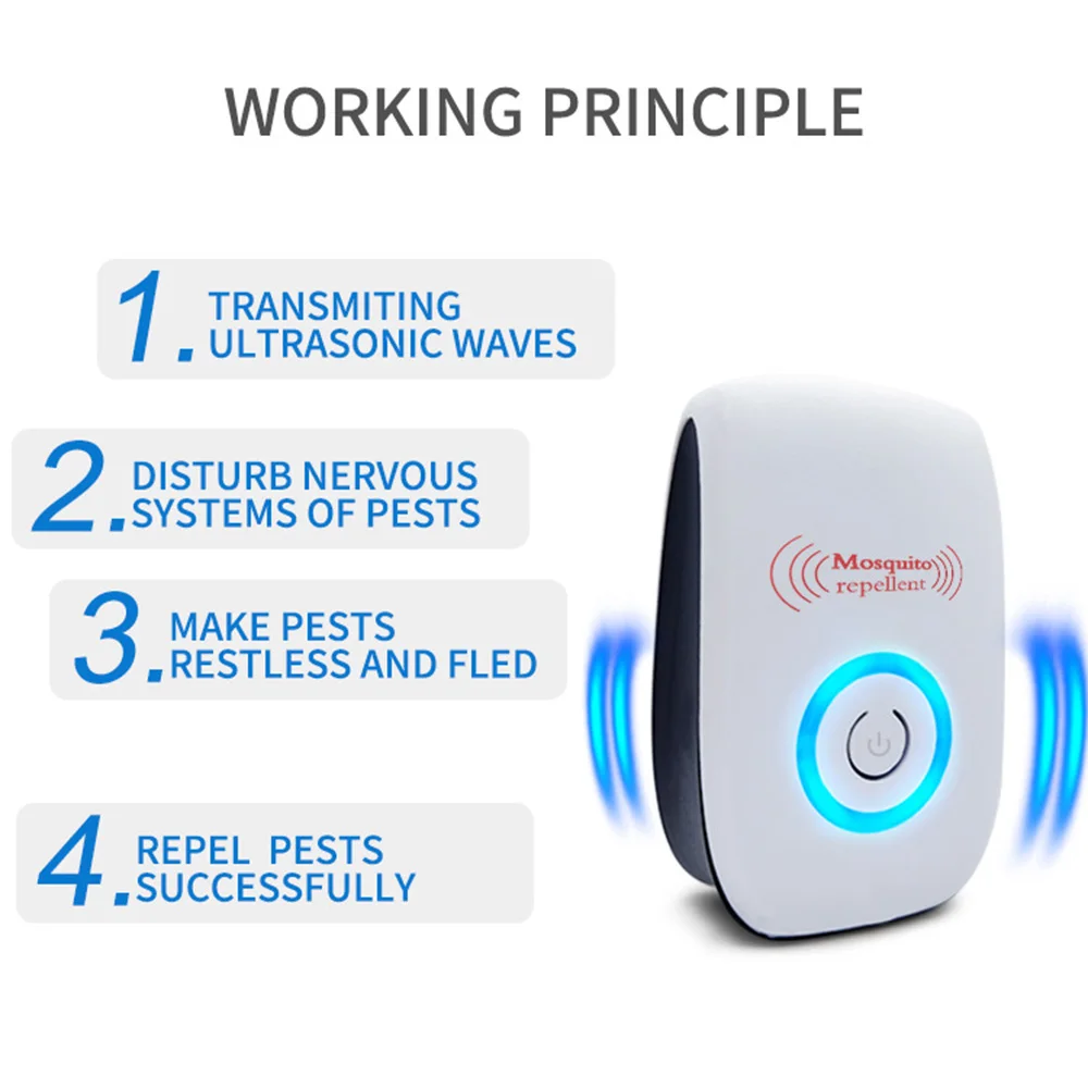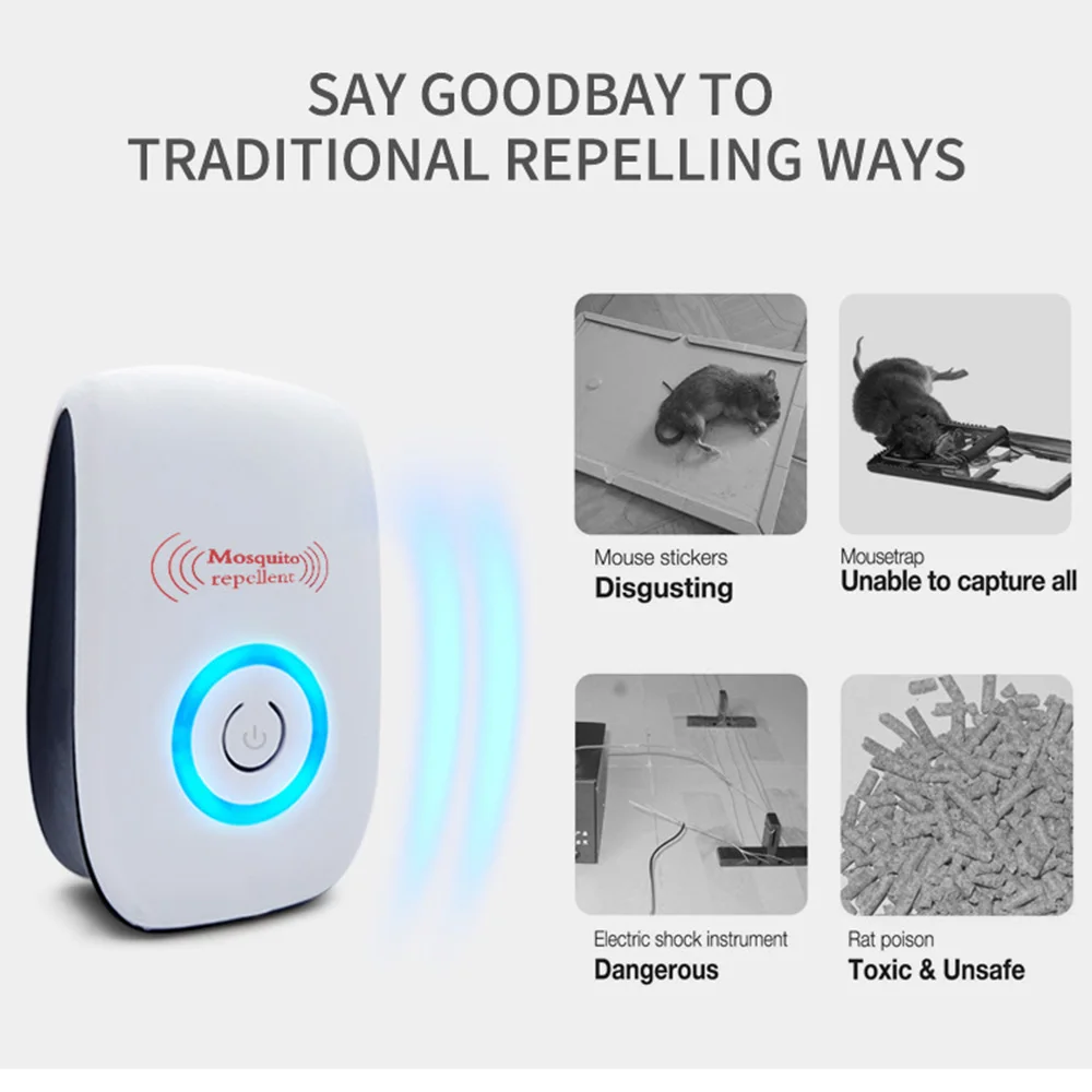 Ultradźwiękowy jest niesłyszalny dla ludzi i zwierząt domowych, przyjazna dla środowiska alternatywa dla niebezpiecznych trucizn i opryskiwaczy, bez nieprzyjemnego zapachu i ciał.