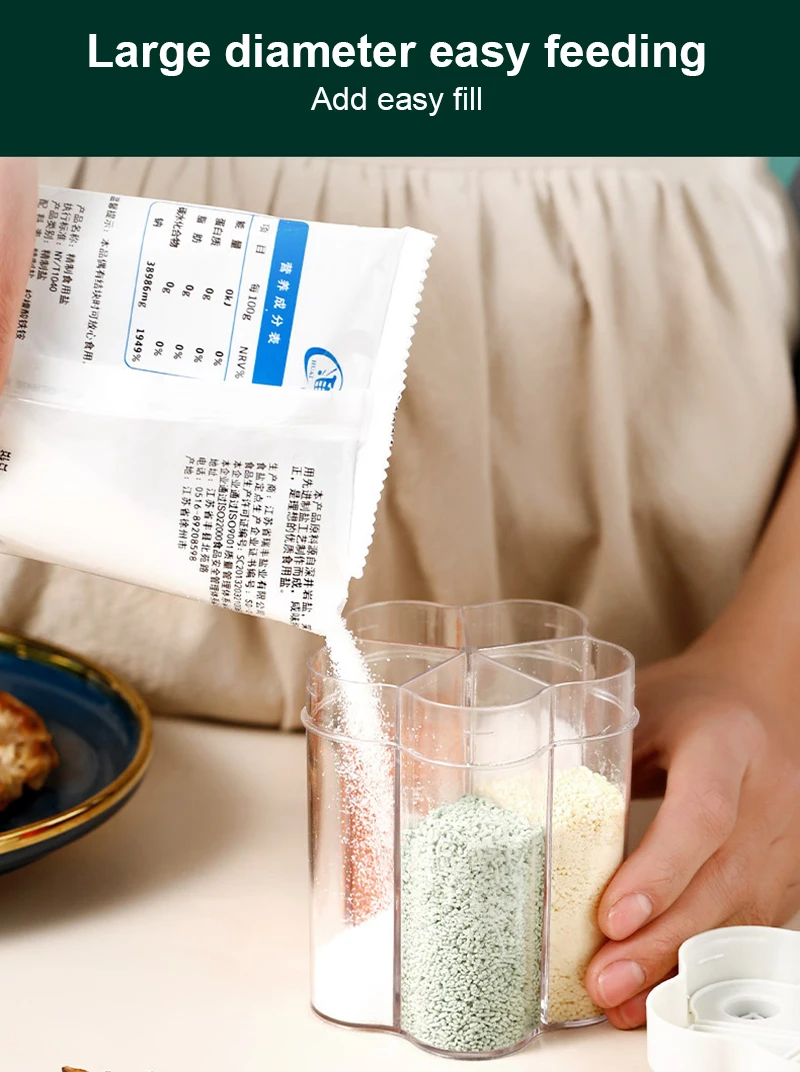 Niezależna konstrukcja siatki otwierającej: puszka na przyprawy jest przechowywana do woli, co nie jest łatwe do smaku i łatwe w użyciu.