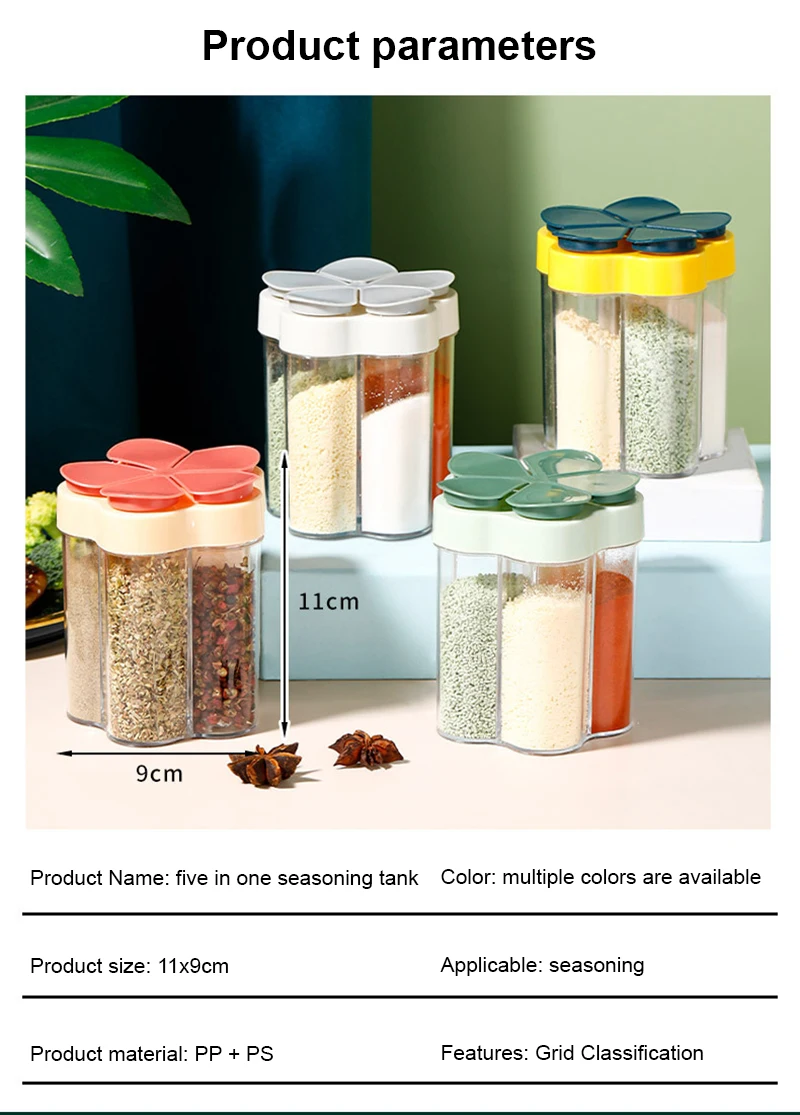 Pięć w jednym przezroczystym pudełko do przypraw połączenie słoik na przyprawy kuchnia przyprawa pojemnik do przechowywania sól butelka przyprawy narzędzia