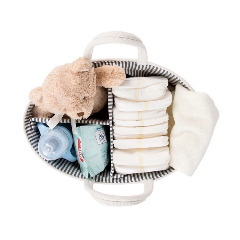 Ten bawełniany kosz na liny jest nie tylko używany jako prosty caddy na pieluchy, ale także do większej ilości zastosowań, takich jak koszyk piknikowy, pojemnik na przedszkola i ręczny organizer stoarge, gdy twoje maleństwa dorosną. Nigdy nie będzie to marnotrawstwo i równa się kilku kosztom za jeden koszt.
