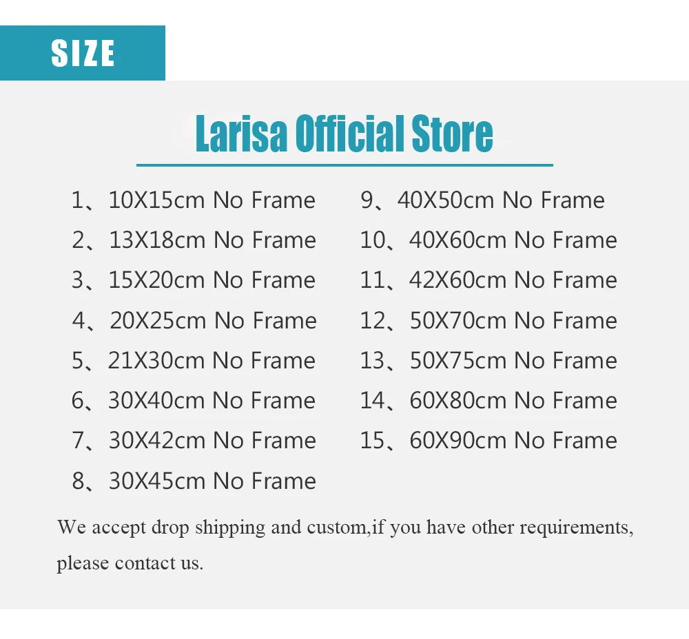 Na płótnie rozmiar:10x15cm bez ramki, 13x18cm bez ramki, 15x20cm bez ramki, 20x25cm bez ramki, 21x30cm bez ramki, 30x40cm bez ramki, 30x42cm bez ramki, 30x45cm bez ramki, 40X50cm bez ramki, 40x60cm bez ramki, 42X60cm bez ramki, 50x70cm bez ramki, 50X75cm bez ramki, 60x80cm bez ramki, 60X90cm bez ramki(Uwaga: 1 cal = 2.54 cm)