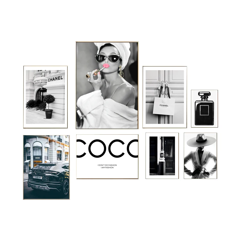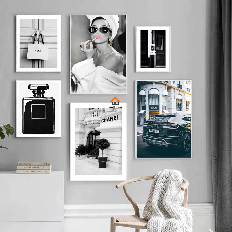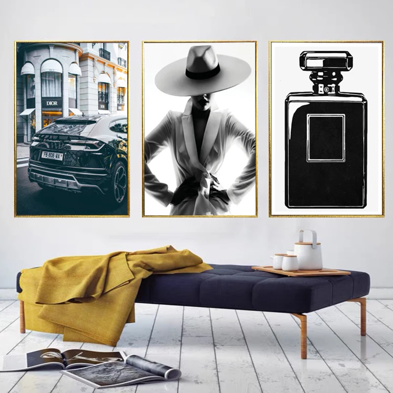 Perfumy damskie, moda, czarny biały plakat kobieta, plakat super samochód, Coco plakat z cytatem, paryż, nowoczesny salon dekoracji wnętrz, płótno malarstwo ścienne, zdjęcia na ścianę, dekoracja wnętrz luksus