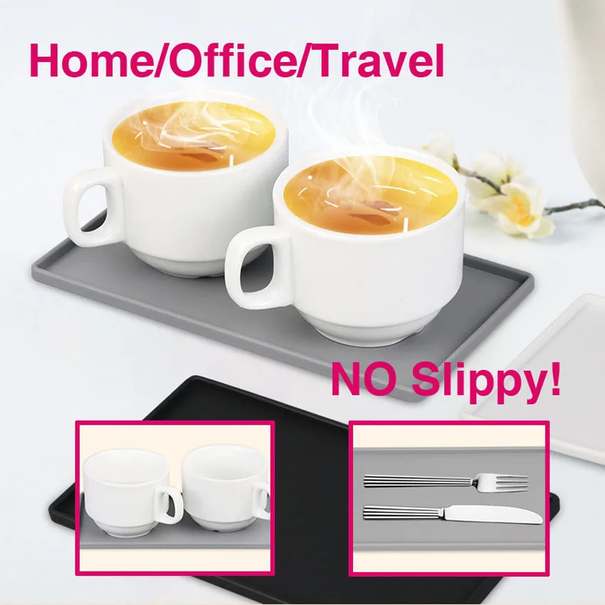 Silikonowe plastikowe kwadratowe antypoślizgowe Twsitable płaskie stojak na tace mobilna tacka mydło łazienkowe taca kawy i herbaty uchwyt taca na sztućce