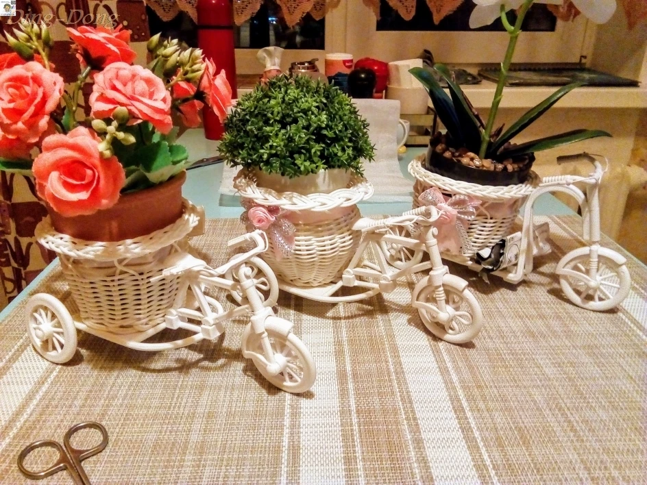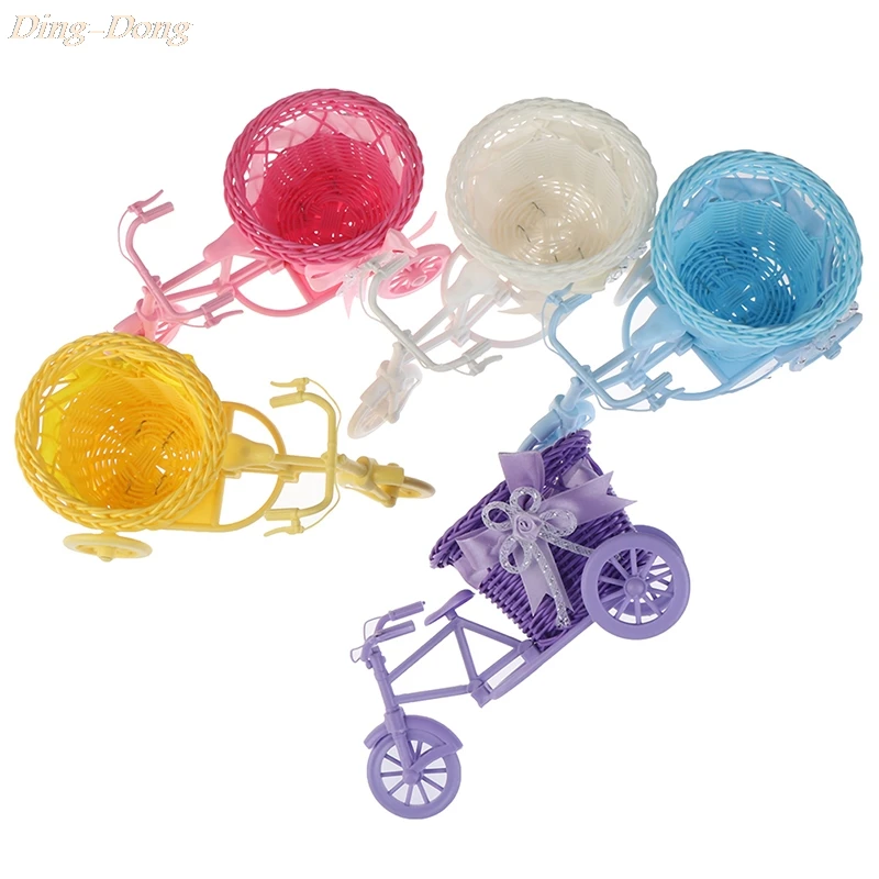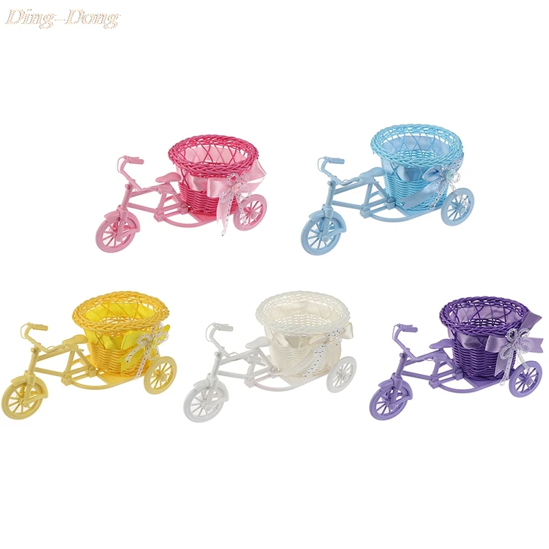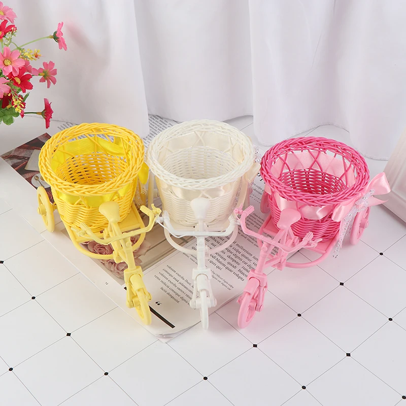 Plastikowy dekoracyjny kwiat kosz garnek Rattan rowerowy kosz przechowywania Float wazon stojak na rośliny uchwyt trójkołowy rower projekt organizator