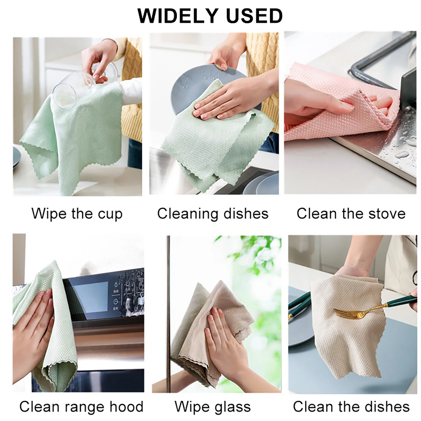Naczynie z mikrofibry tkaniny do mycia naczyń, 5 szt rybie łuski projekt danie szmaty, wielokrotnego użytku do czyszczenia tkaniny do kuchni, Super chłonny, Nonstick oleju zmywalny szybkie suszenie