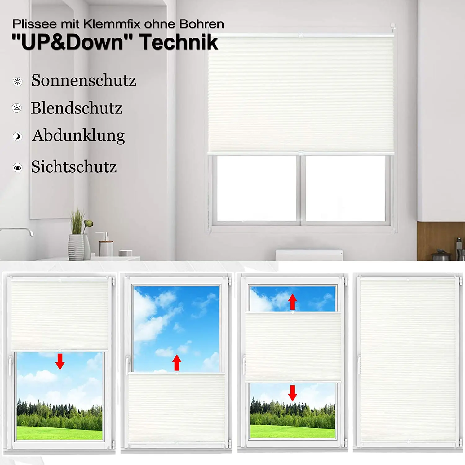 Efekt zaciemnienia zachowuje twoją prywatność:❤Plisowana roleta jest zamocowana między dwoma profilami i wyposażona w łańcuch podnośnika, może skutecznie zapobiegać przedostawaniu się światła do pomieszczenia i przyciemniać pomieszczenie, aby zapewnić wysoką jakość snu i utrudniać wścibskie oczy z zewnątrz.