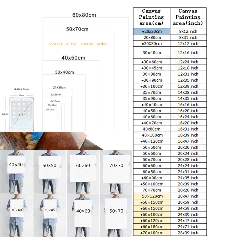 Rozmiar: 5*7 cali (13*18 cm); 6*8 cali (15*20 cm); 8*10 cali (20*25 cm); 8*12 cali (21*30 cm); 12*16 cali (30*40 cm) ;13*20 cali (35*50 cm); 16*24 cale (40*60 cm); 20*28 cali (50*70 cm) ; 24*32 cale (60*80 cm)