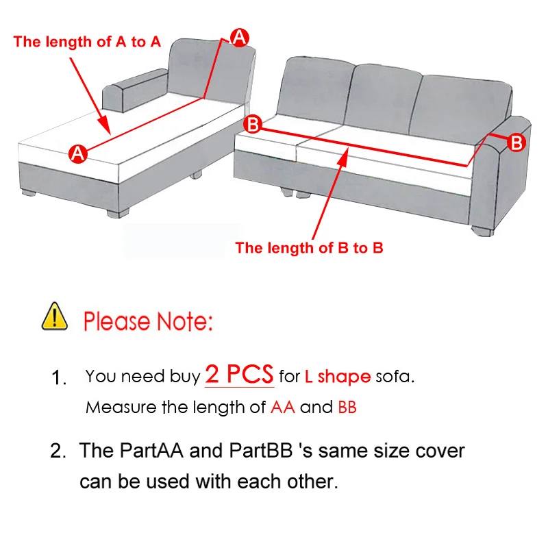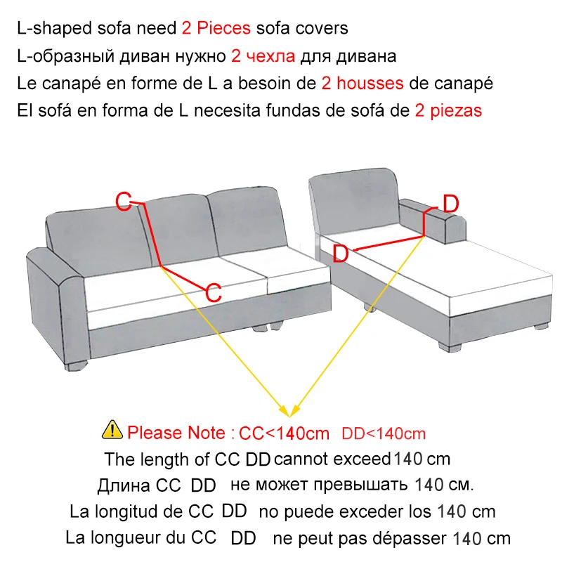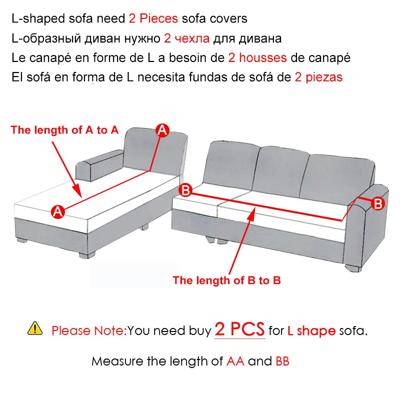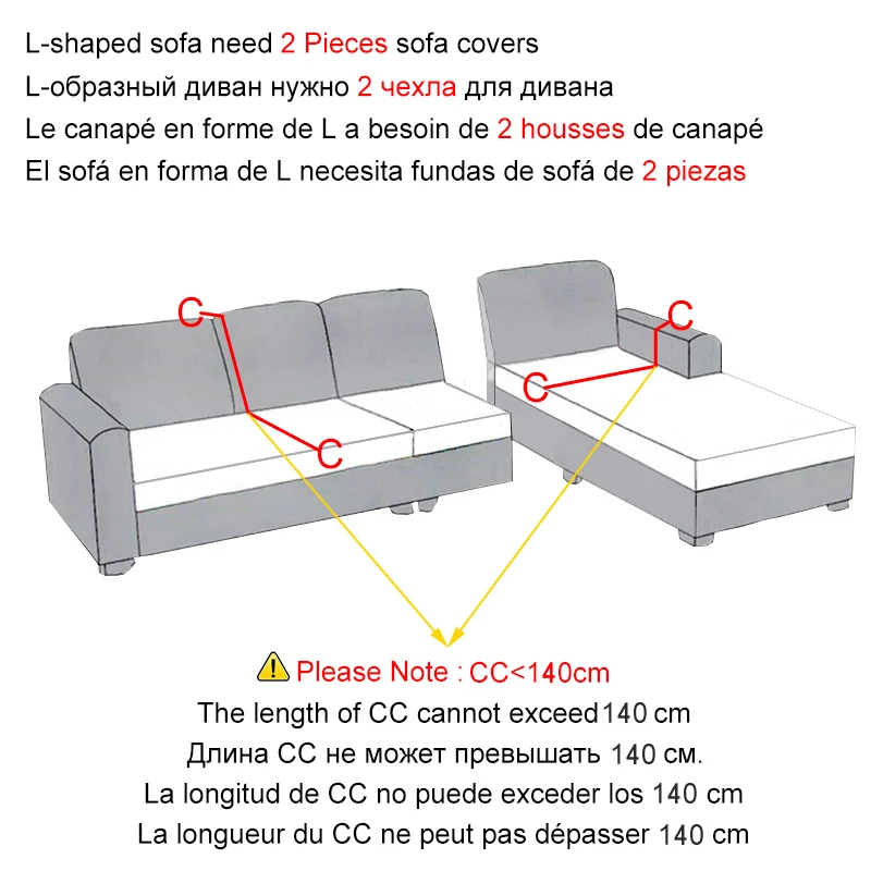 Wskazówki: w sumie musisz kupić 2 sztuki pokrowców na ukończoną sofę w kształcie litery L.
