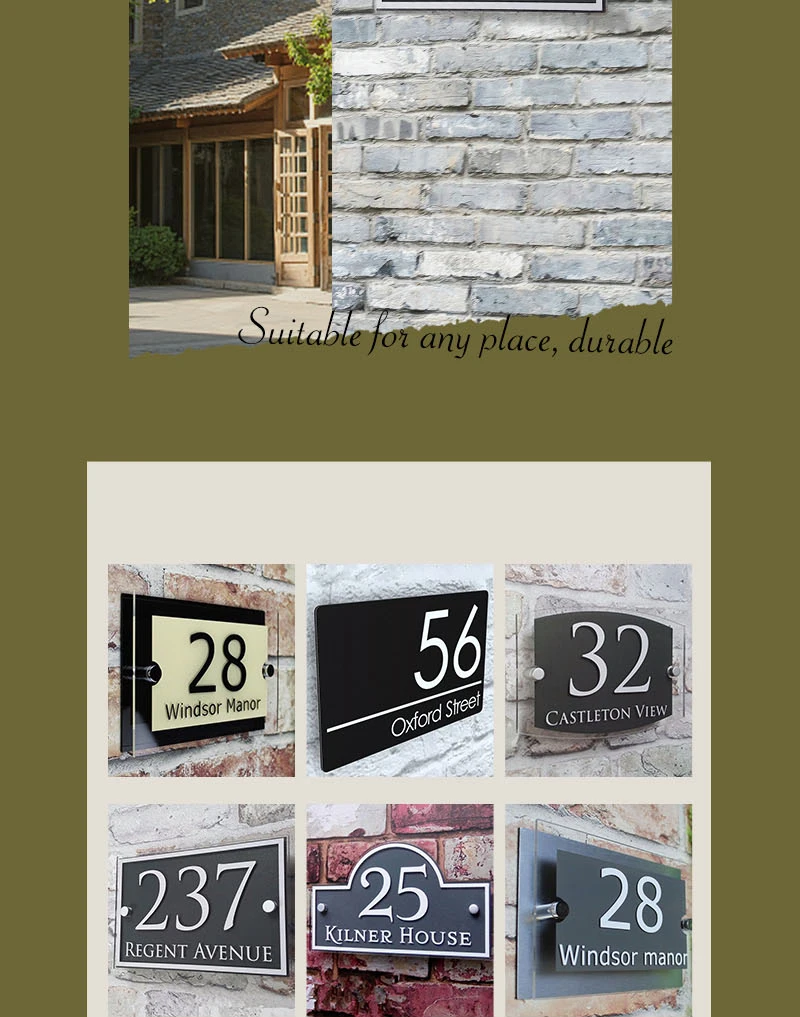 2> tablica wykonana jest z odpornego na warunki atmosferyczne 5mm Arcylic i mierzy 250mm x 150mm i jest wstępnie nawiercona, wspornik ze stali nierdzewnej w zestawie.