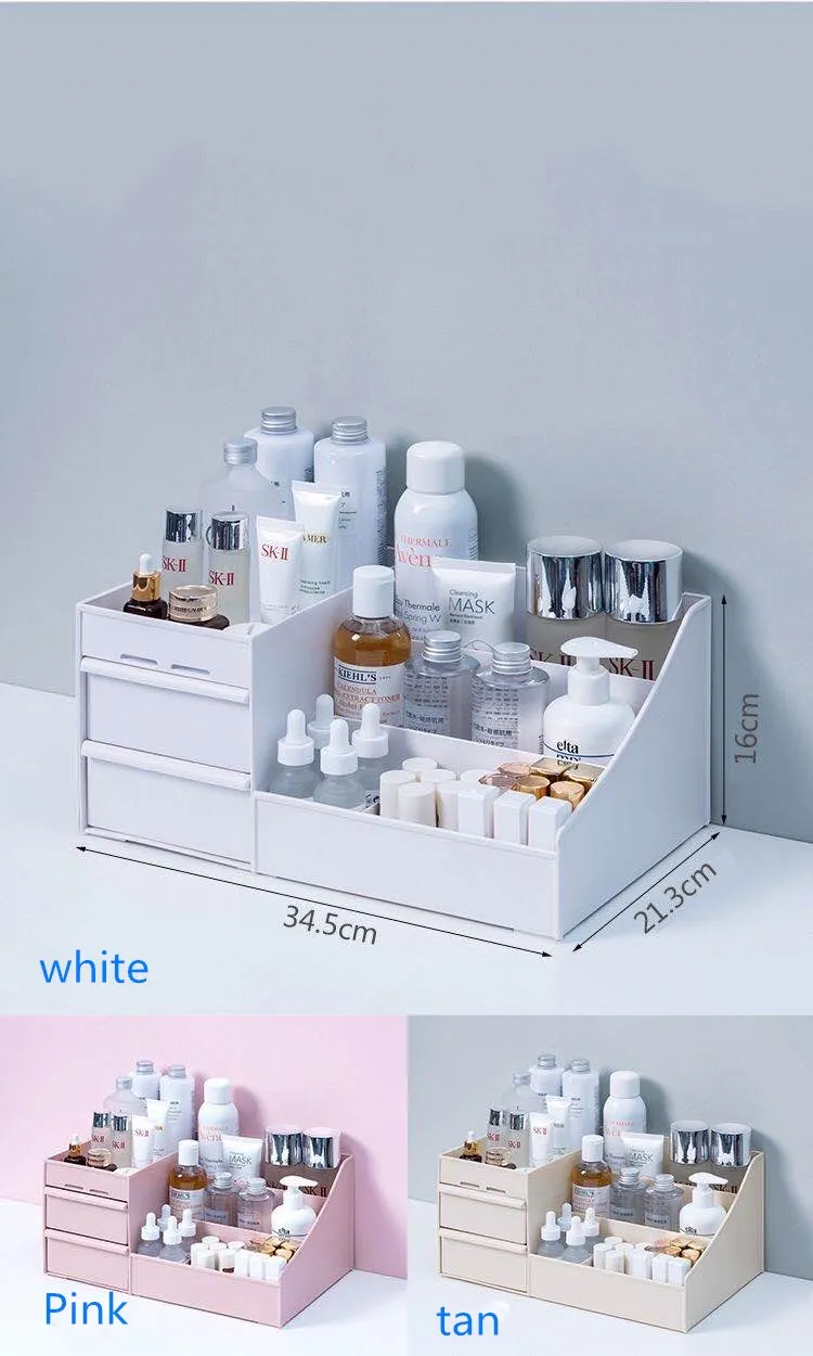 Pojemny organizer na przybory do makijażu, pudełko na kosmetyki, pojemnik stołowy z szufladkami, na lakiery do paznokci, biżuteria