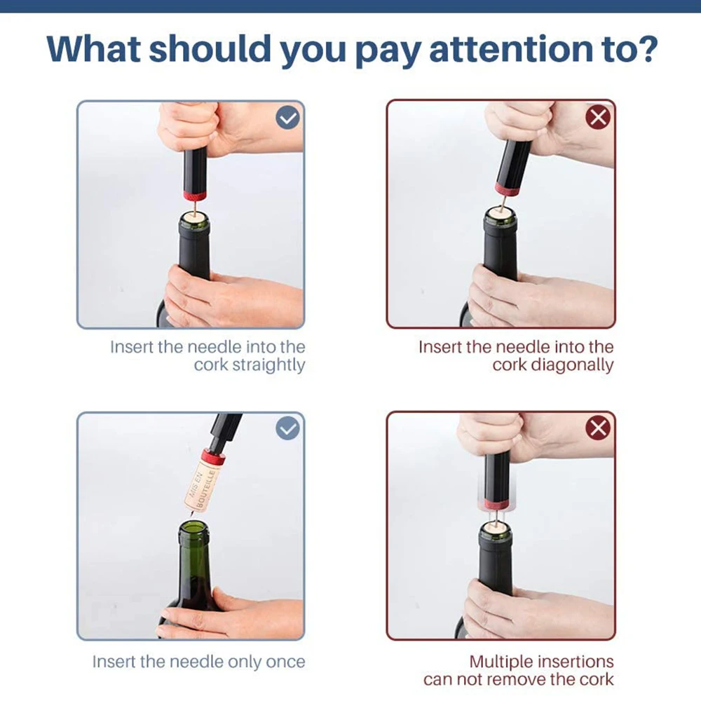 【Łatwa operacja】 wystarczy kilka prostych kroków, aby otworzyć korek do butelki wina. Pociągnij pompę powietrza w górę iw dół 5-7 razy, użyj zasady ciśnienia powietrza, aby otworzyć korek butelki wina, aby uzyskać nienaruszony korek.