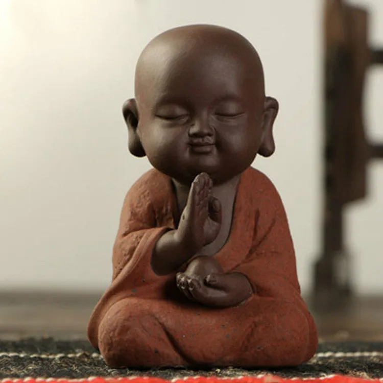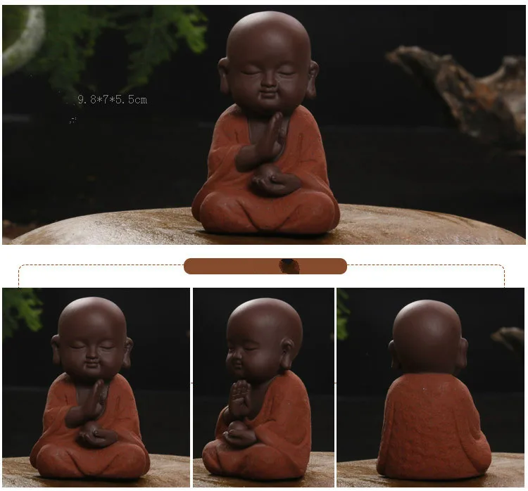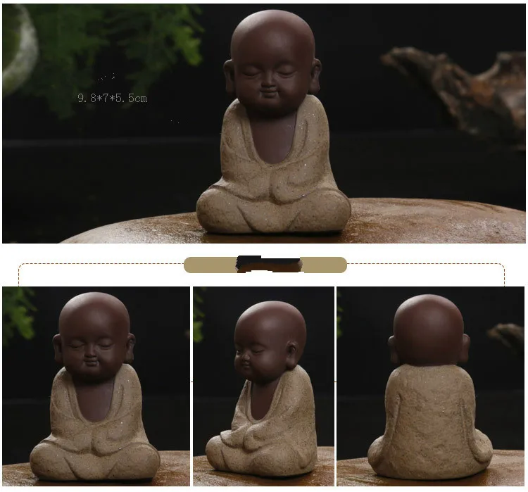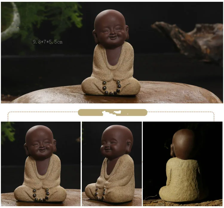 Posągi buddy mały mnich kolorowy piasek ceramiczny klub domowy geomantyczna dekoracja fioletowa figurka herbata zwierzę domowe
